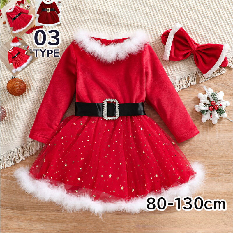 サンタ 子供 クリスマス ワンピース A B C 90cm 100cm 110cm 120cm 130cm