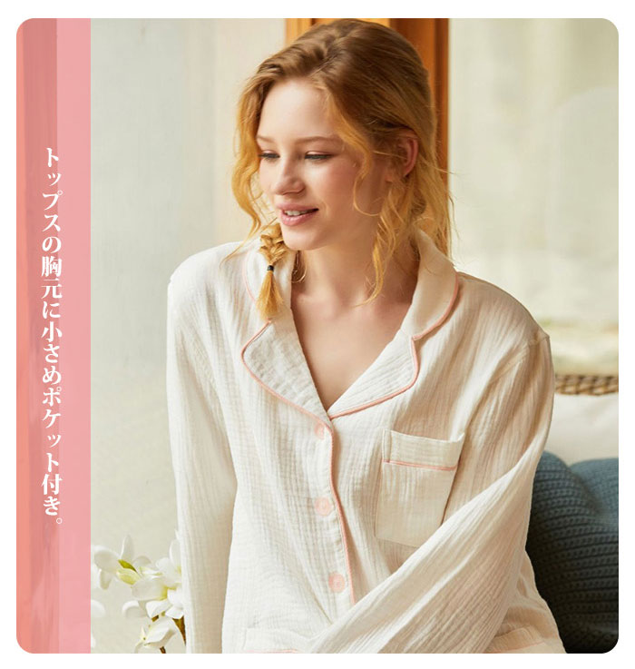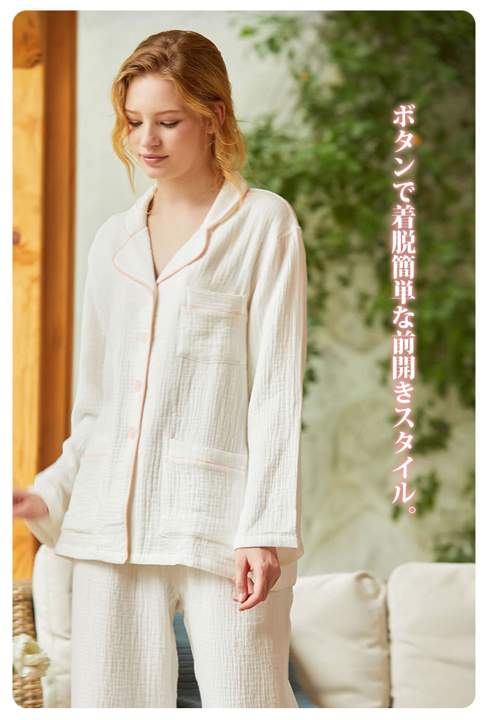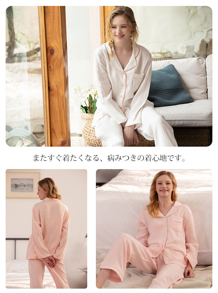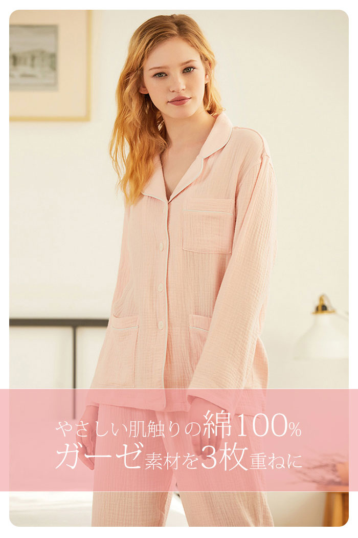 ガーゼ パジャマ レディース ルームウ インナー 下着 ナイトウエア 特集 ピンク ホワイト S M L