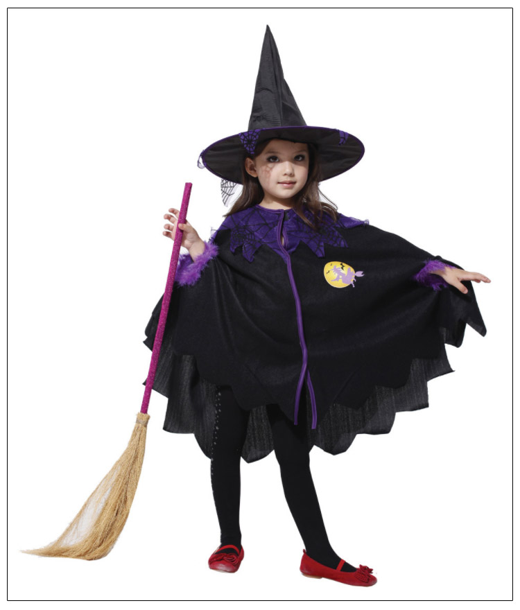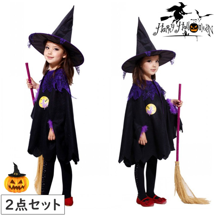 ハロウィン コスプレ 子供 衣装 仮装 オシャレ コスチューム 女の子 演出 魔女 キッズ クイーン コスプレ衣装 かわいい 黒 セット ケープ風 悪魔衣装 変装 ポンチョ+帽子