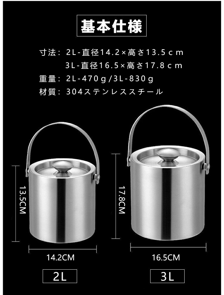 アイスペール ステンレス 二重構造 魔 キッチン用品 食器 調理器具 豊富 2L 3L