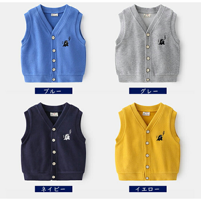 カーディガン ベスト キッズ ベビー キッズ トップス ベスト 新登場! ブルー グレー ネイビー イエロー 90cm 100cm 110cm 120cm 130cm