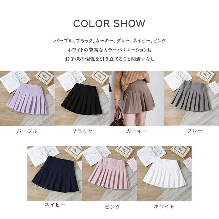 プリーツスカート 女の子 フレアスカー キッズ ボトムス スカート 豊富な品揃え パープル ブラック カーキー グレー ネイビー ピンク ホワイト 100cm 110cm 120cm 130cm 140cm 150cm 160cm 170cm