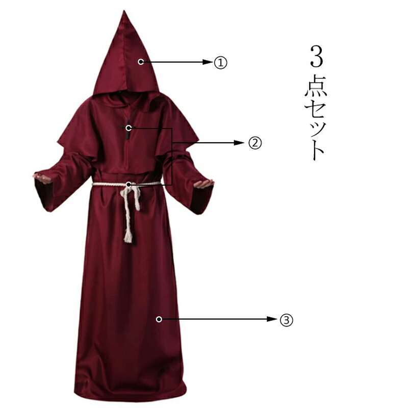 ハロウィン コスプレ 仮装 神父 死神 ロング マント フード付き コート 大人 キッズ 魔法使い ローブ 悪魔 サタン デビル ホラー 怖い 衣装 大人用 パーティー 鬼 おに 吸血鬼