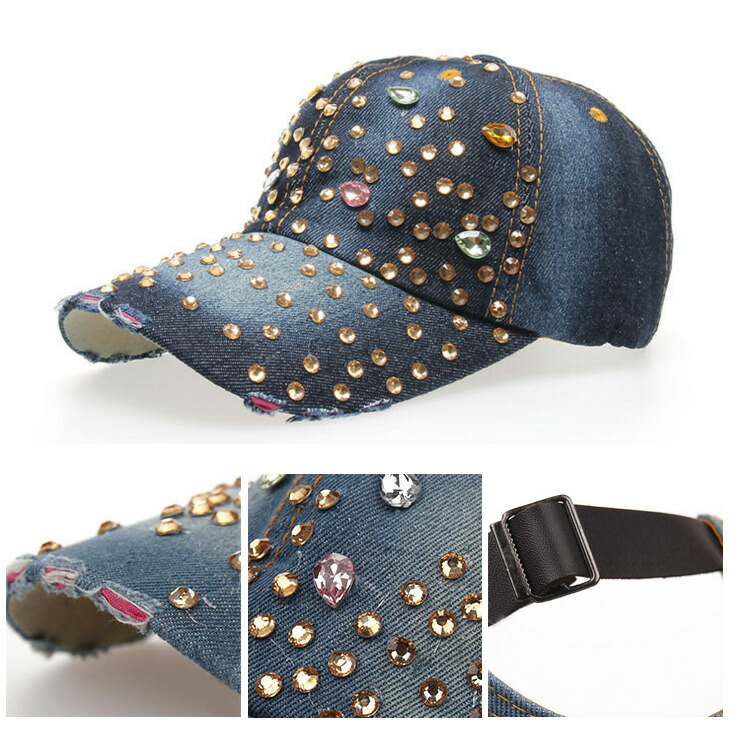 7カラースタッズ付き キラキラ 帽子 スナップ キャップ ストーン ビジュー ゴールド スタッズ デニム ヒップホップ ストリート ダンス ファッション 踊り 体育祭 文化祭 HIPHOP 衣装