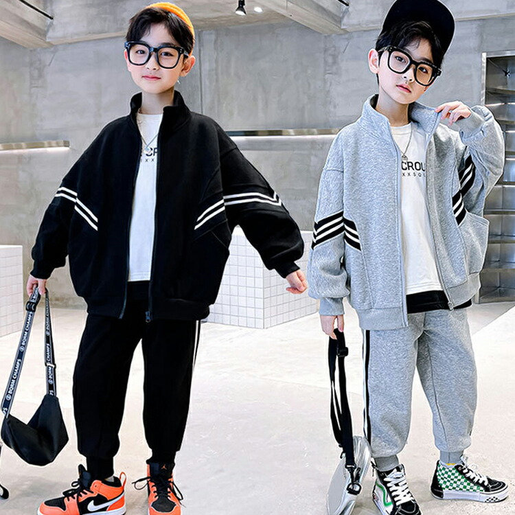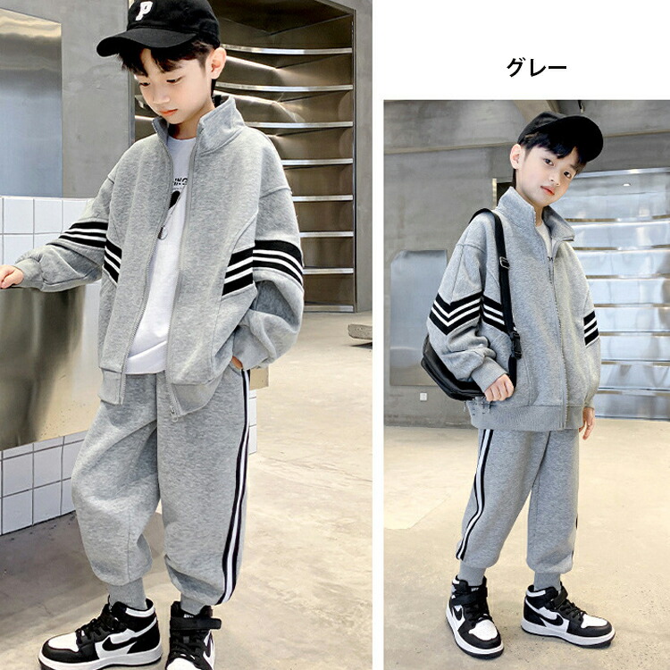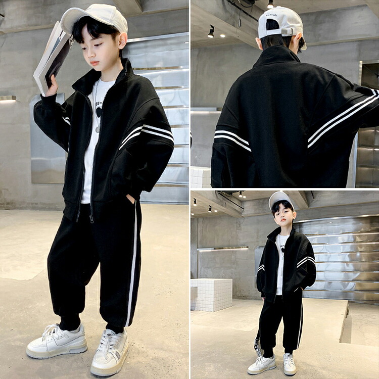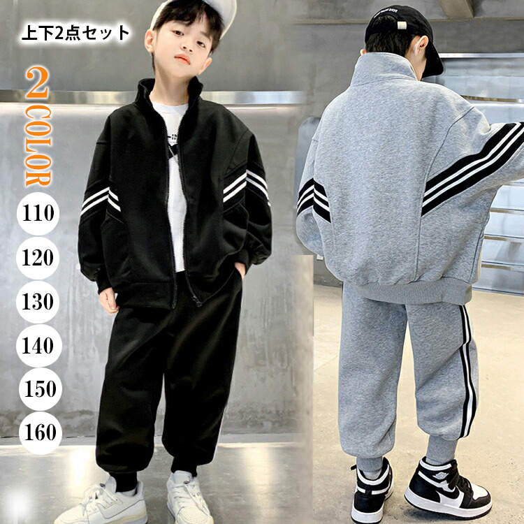 キッズセットアップ ジャージ 2点セッ キッズ ベビー マタニティ 早い者勝ち ブラック グレー 110 120 130 140 150 160