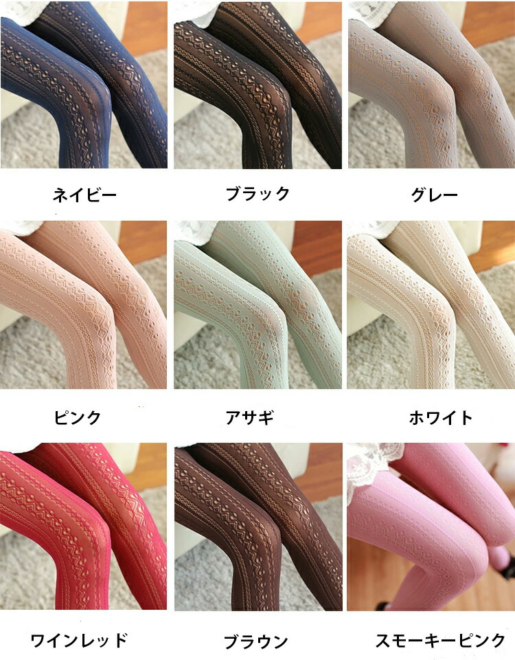 9カラー 新作 レース柄 縦ライン 美 レディース 靴下 レッグウェア スパッツ レギンス 新作 ピンク ブラウン スモーキーピンク ホワイト ワインレッド ネイビー アサギ グレー ブラック