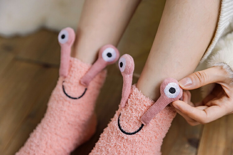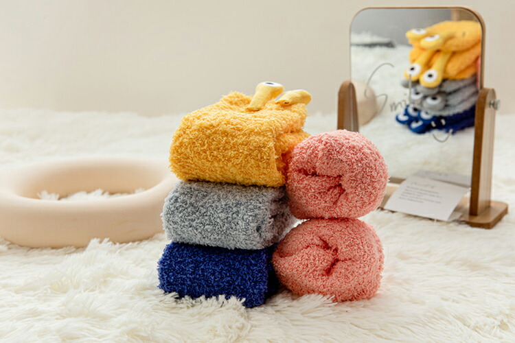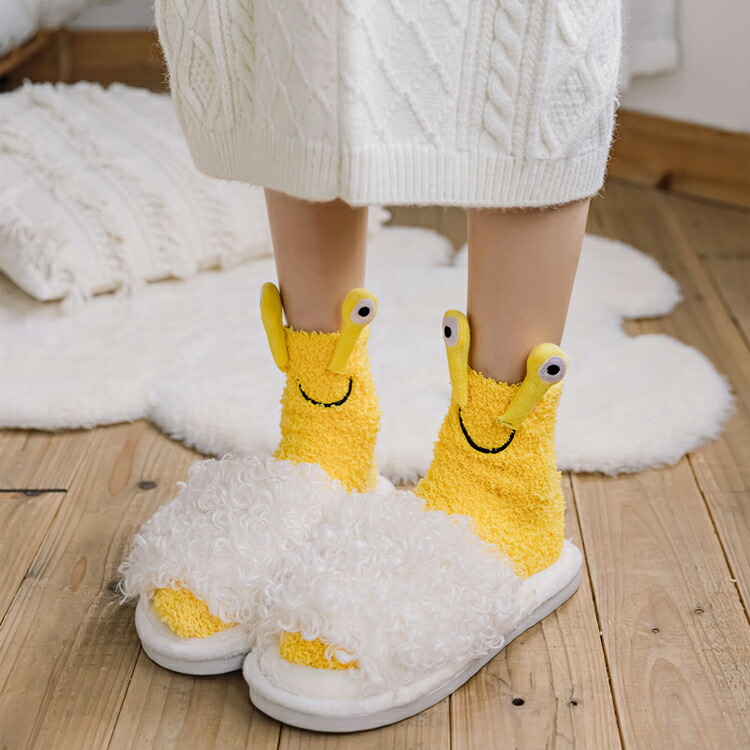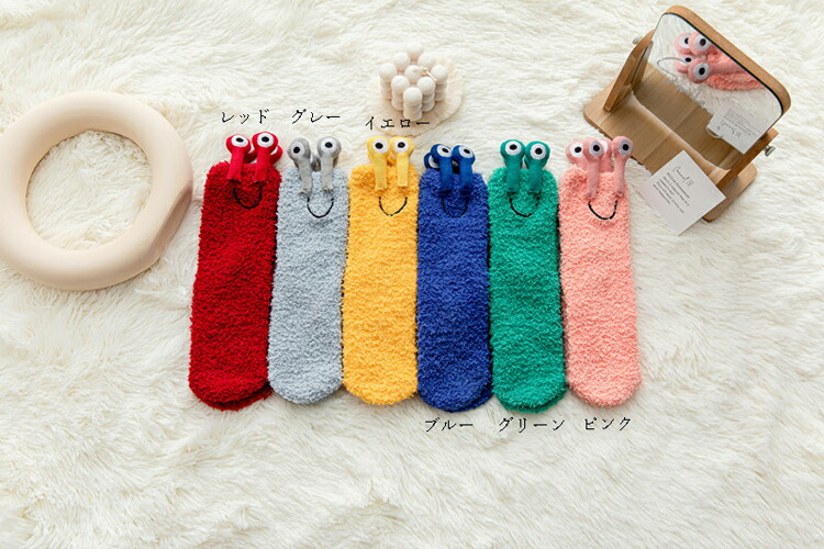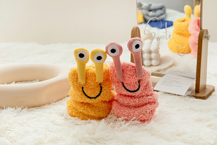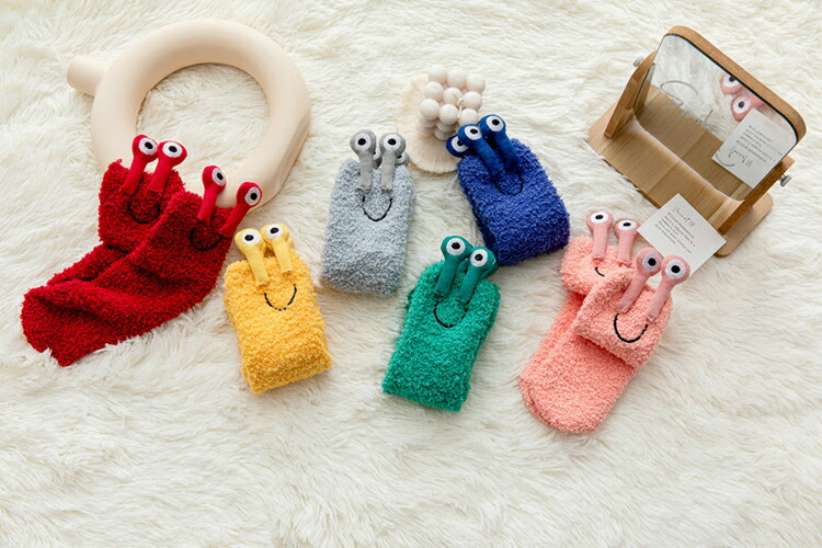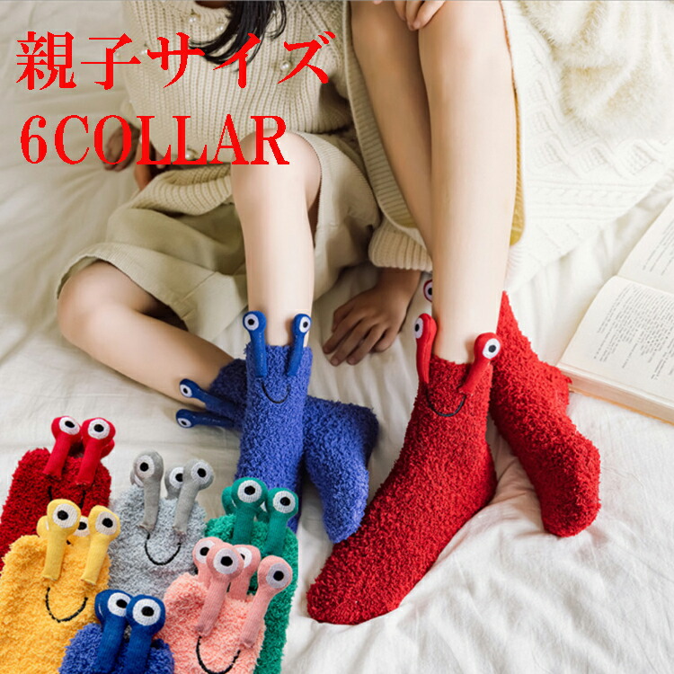 あったか靴下 親子サイズ ルームソックス 保温 もこもこ 防寒 秋冬 全6色 モンスター かたつむり エイリアン キャラクター 目玉 ソックス レディース 大人 子供 ジュニア 靴下 ふわふわ キッズ