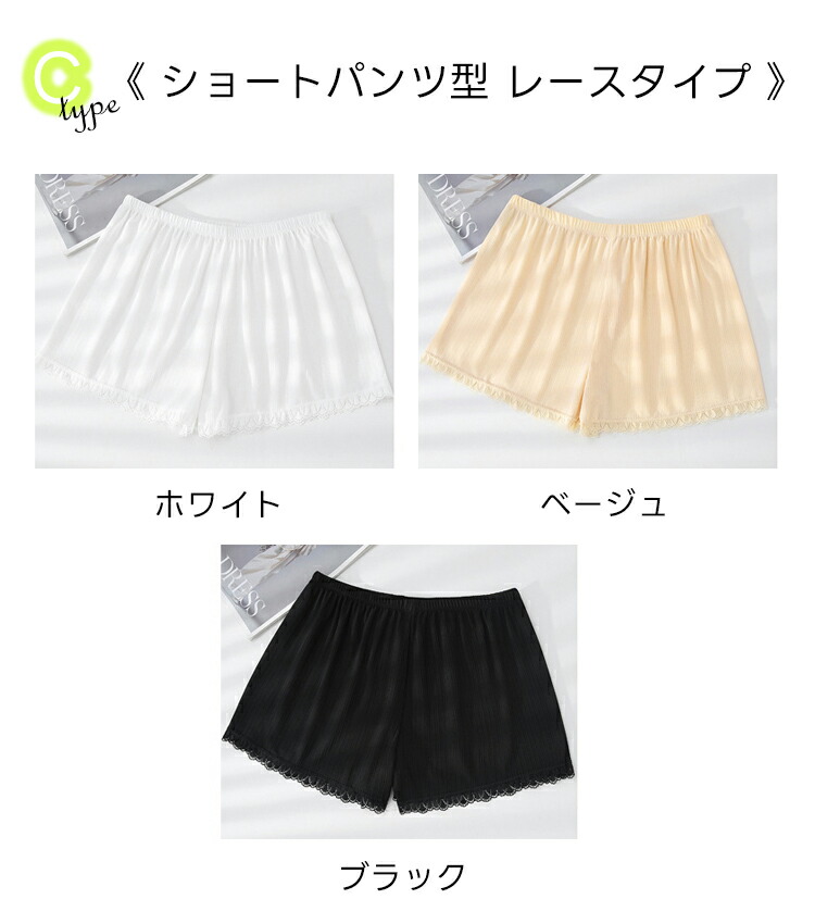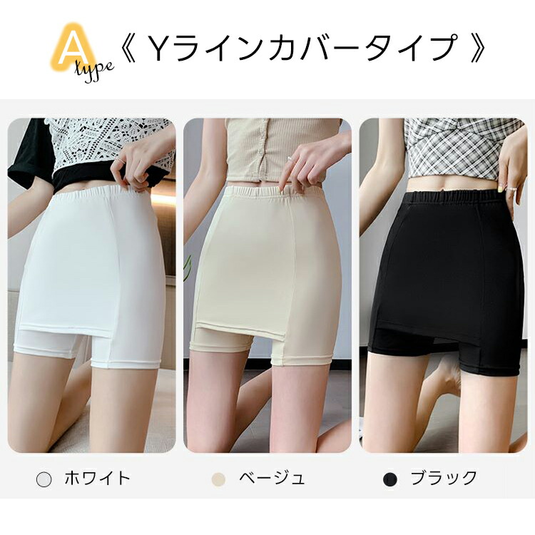 Yラインカバーペチパンツ ペチコート インナー 下着 ナイトウエア 通販 ホワイト ベージュ ブラック グレー グリーン Aタイプ M-L Aタイプ L-XL Bタイプ M-L Bタイプ L-XL Cタイプ M-L Cタイプ L-XL