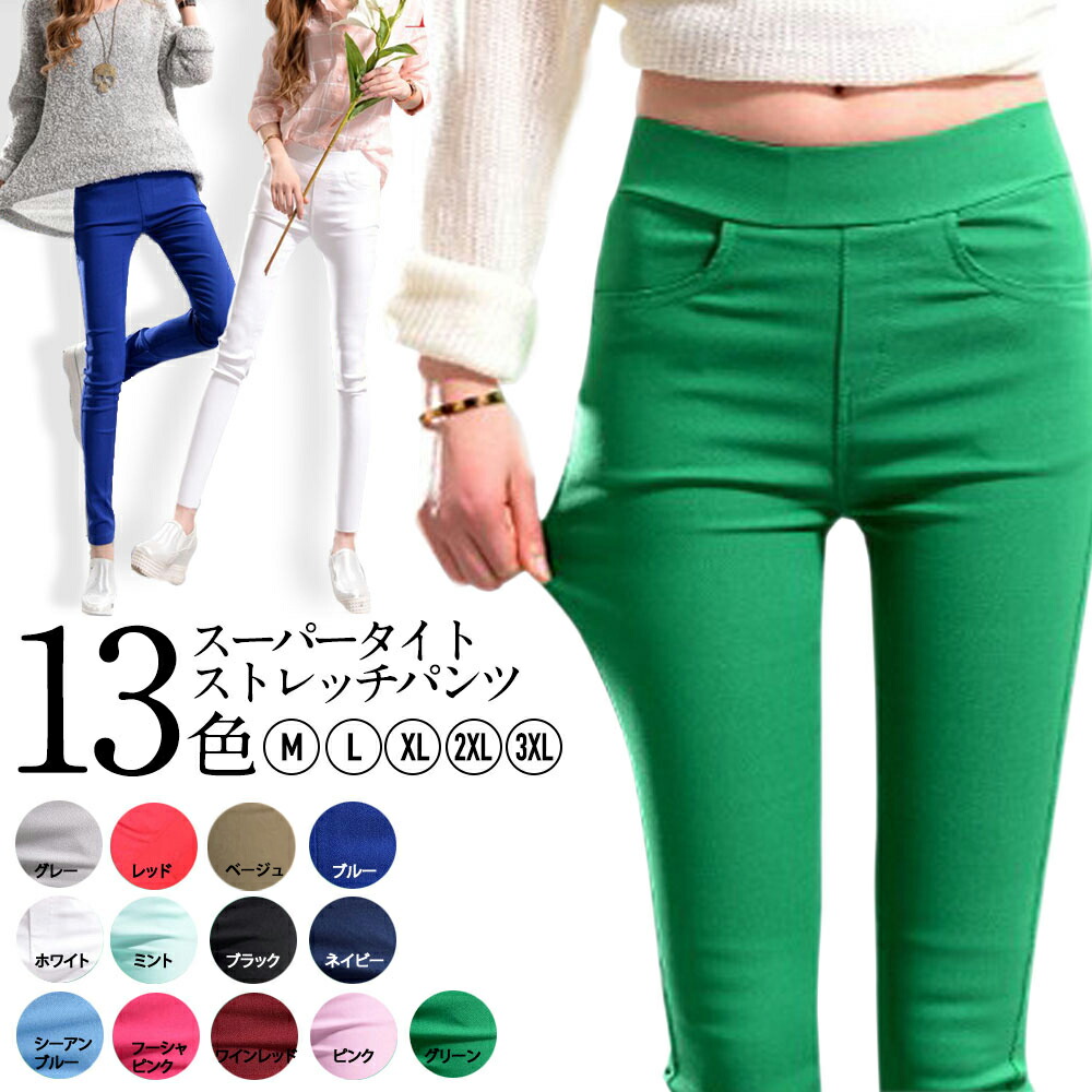 春夏 レディース パンツ 13カラー ストレッチパンツ 脚長美脚 カラフル ストレッチ抜群 パギンス パワーアップ タイト カラフルパンツ チノパン レギパン スキニーパンツ デニレギ レギンスパンツ