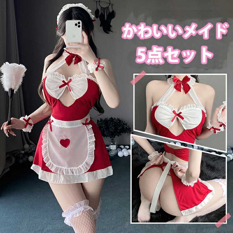 セクシー メイド服 コスプレ メイド エロ 超過激 5点セット 背中開き フリル カチューシャ付き エプロン ラブリー セクシーメイド セクシーランジェリー レディース コスチューム