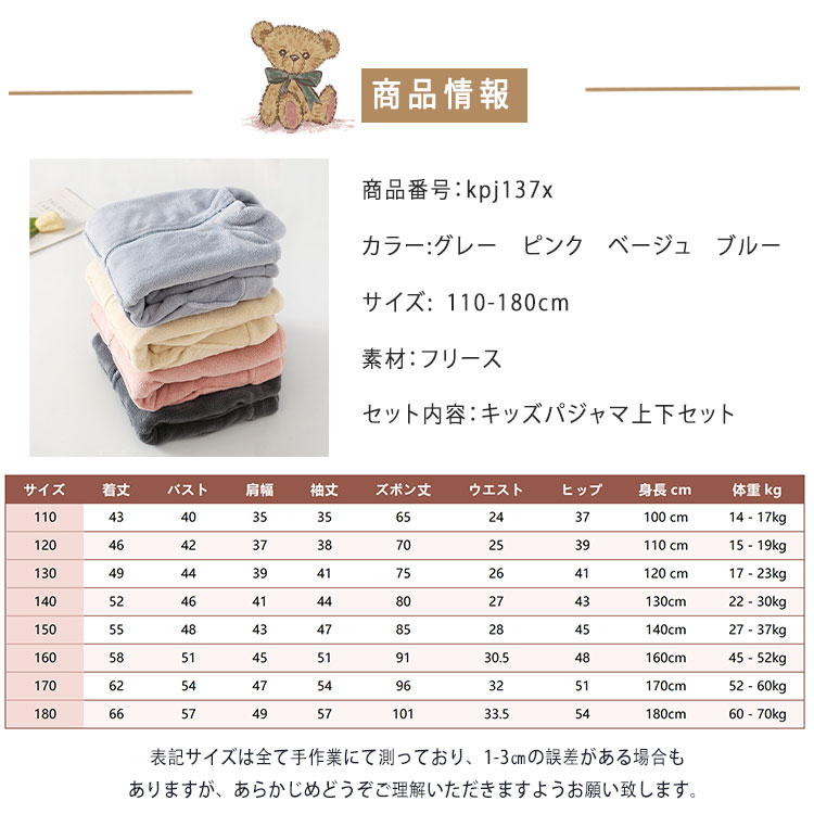 パジャマ キッズ 冬 男の子 女の子 キッズ 下着 パジャマ パジャマ 早い者勝ち グレー ピンク ベージュ ブルー 110 120 130 140 150 160 170 180