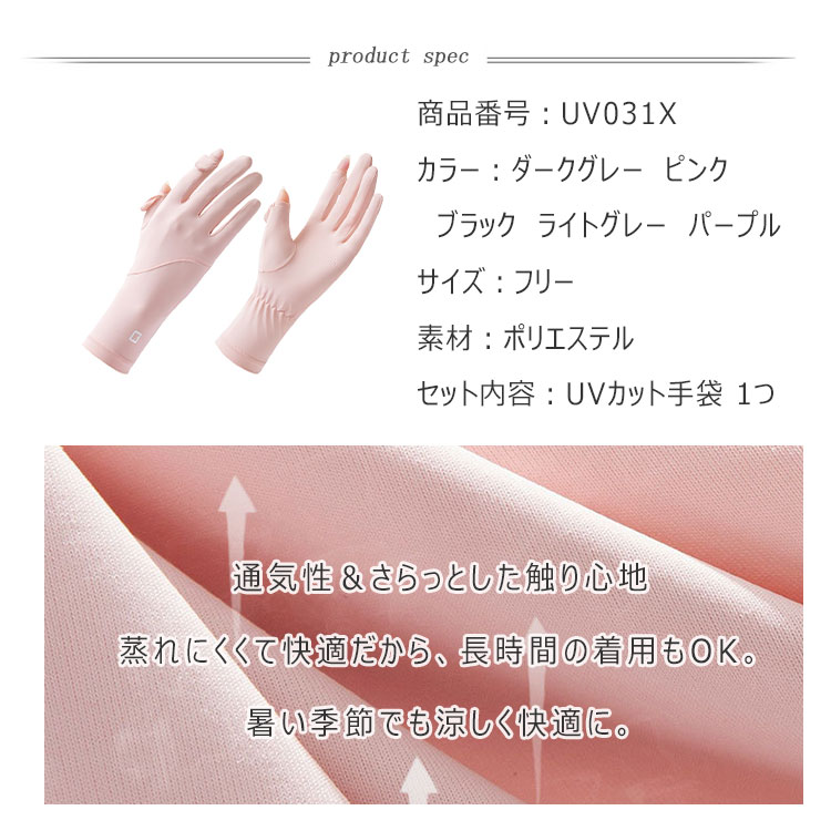 UV手袋 レディース UPF50+ U バッグ 小物 ブランド雑貨 通販 ダークグレー ピンク ブラック ライトグレー パープル