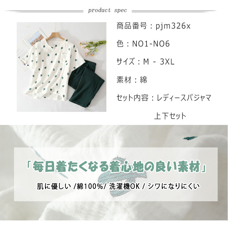 パジャマ レディース 綿 ダブルガーゼ インナー 下着 ナイトウエア 新登場! NO1 NO2 NO3 NO4 NO5 NO6 M L XL 2XL 3XL