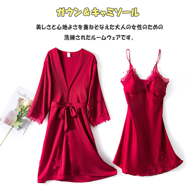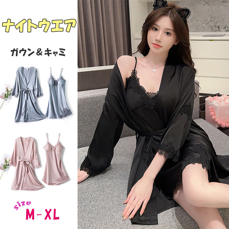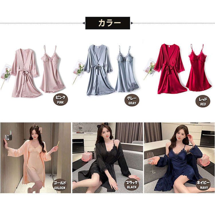 ナイトウエア 2点セット セクシー ガ インナー 下着 ナイトウエア 新作 ピンク グレー レッド ゴールド ブラック ネイビー M L XL