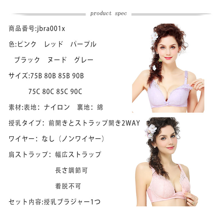 マタニティブラ 授乳ブラ セクシー ノ マタニティ ママ 下着 パジャマ ブラジャー 新登場! ピンク レッド パープル ブラック ヌード グレー 75B 80B 85B 90B 75C 80C 85C 90C