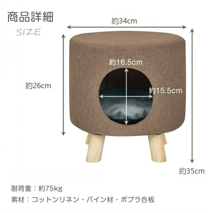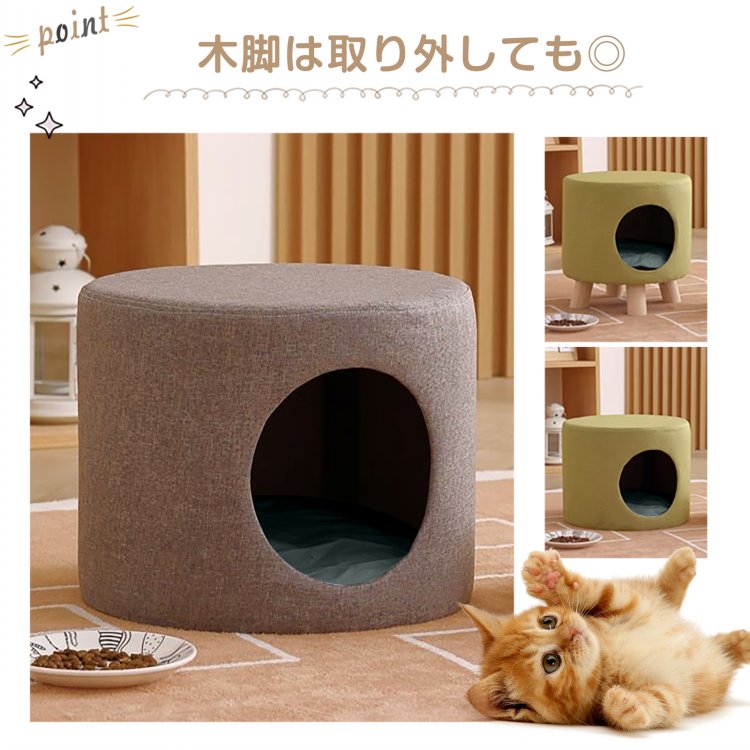 スツール 猫 ベッド 収納 ペットベッ 猫用品 ベッド マット 寝具 ベッド 通販 グレー オレンジ ブラウン グリーン