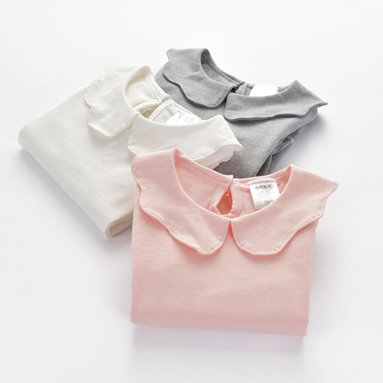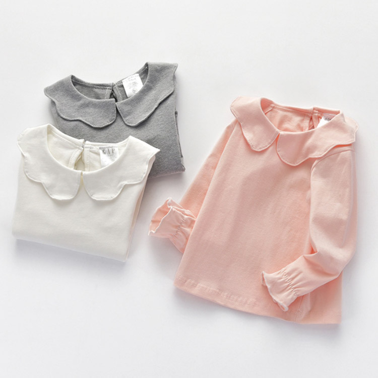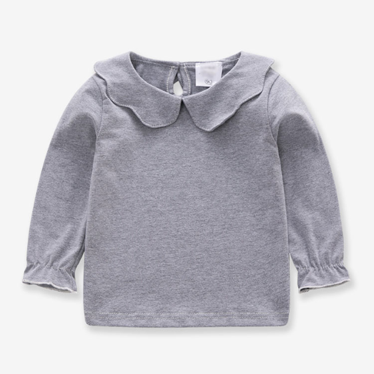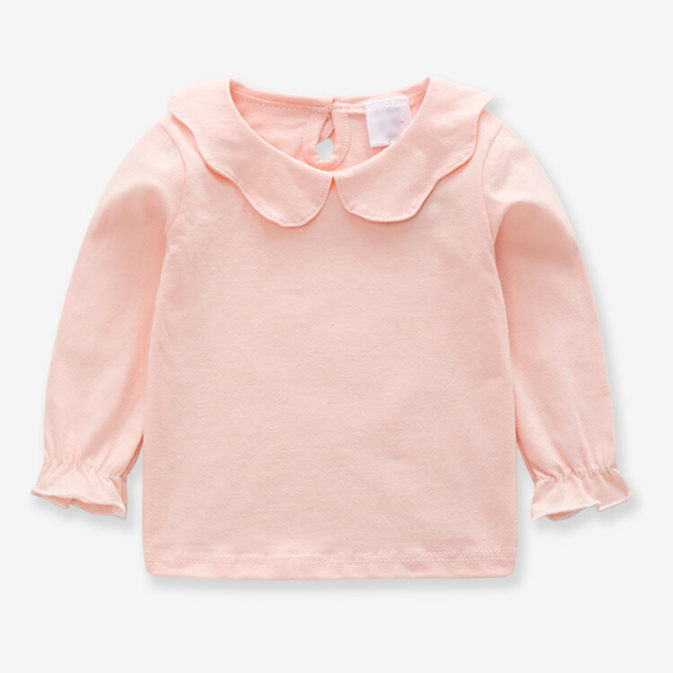 綿 ラッフルカラー 長袖Tシャツ キッ キッズ ベビー マタニティ 新登場! ホワイト ピンク グレー 70 80 90 100 110 120 130