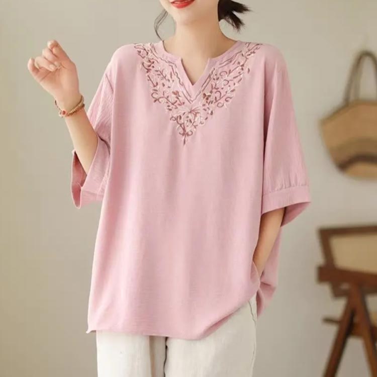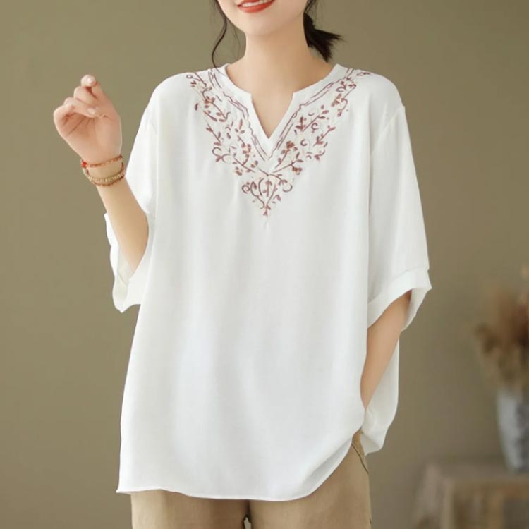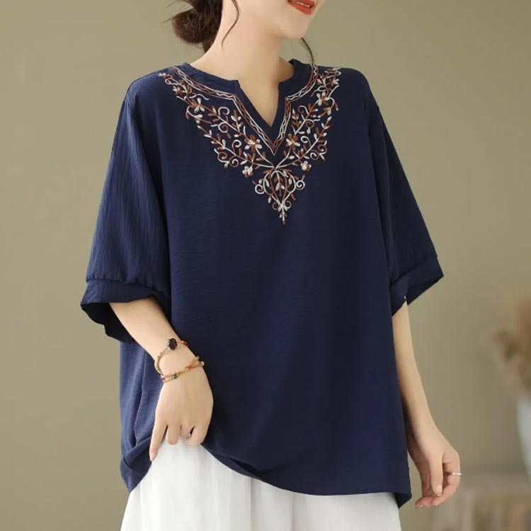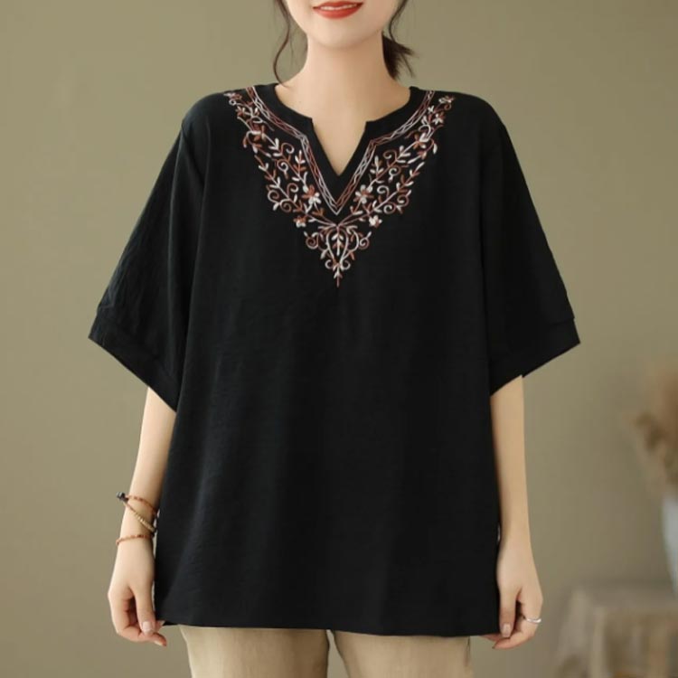 ブラウス 5分袖 薄手 刺繍 春 ゆっ レディースファッション 続々登場 ブラック ホワイト ネイビー ピンク XL 2XL 3XL 4XL 5XL