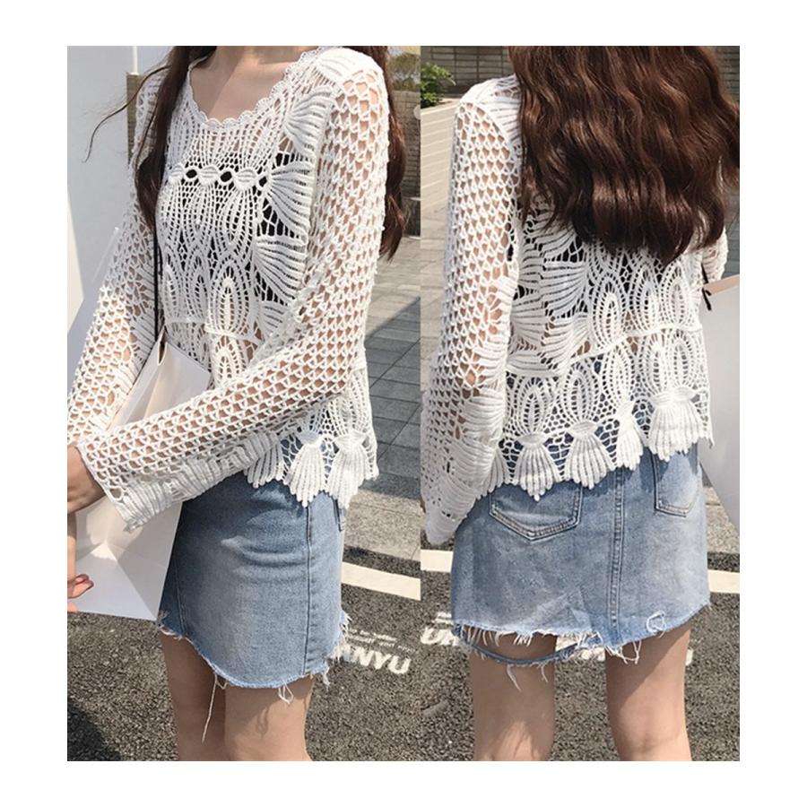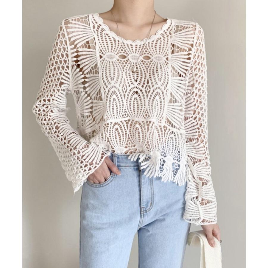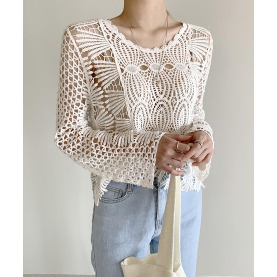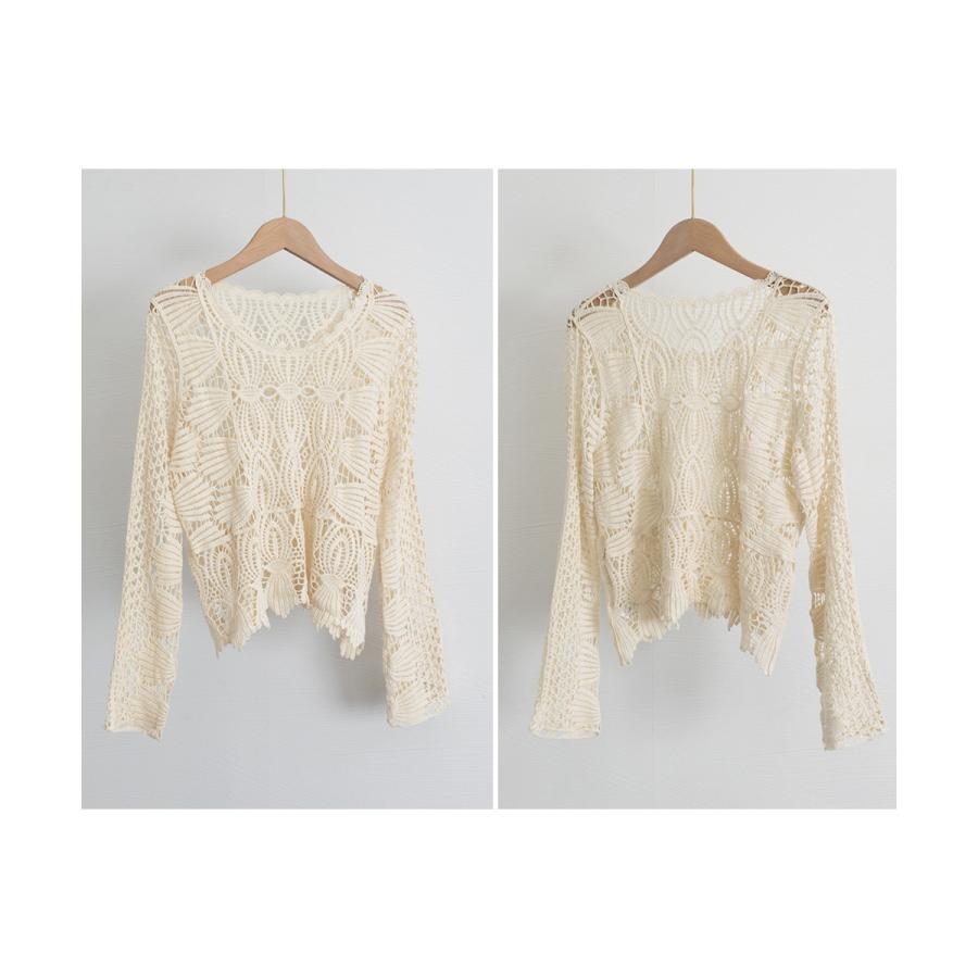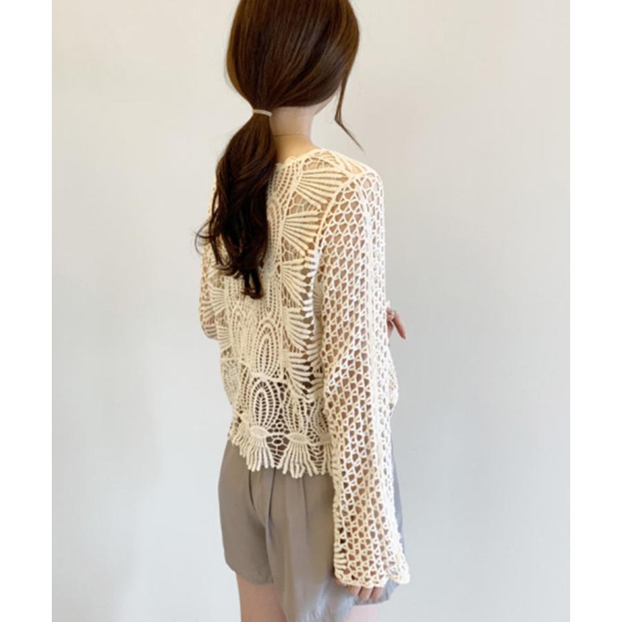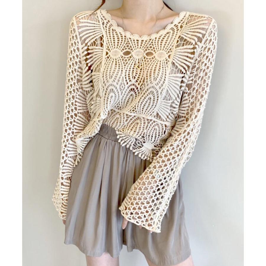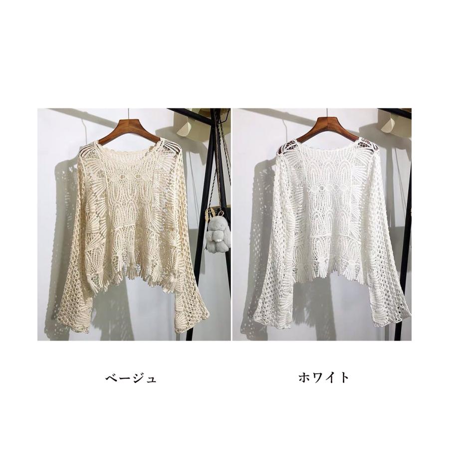 かぎ編みサマーニット 透かし編みトップ レディースファッション 新登場! ベージュ ホワイト