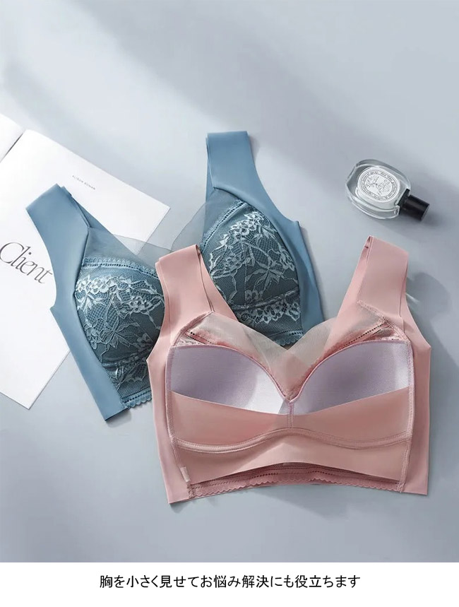 サポートブラ 胸を小さく見せる ノンワ インナー 下着 ナイトウエア 特集 L 2L 3L 4L 5L 6L ブルー ブラック ベージュ ピンク ブラウン パープル