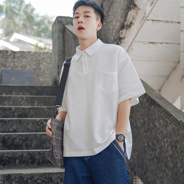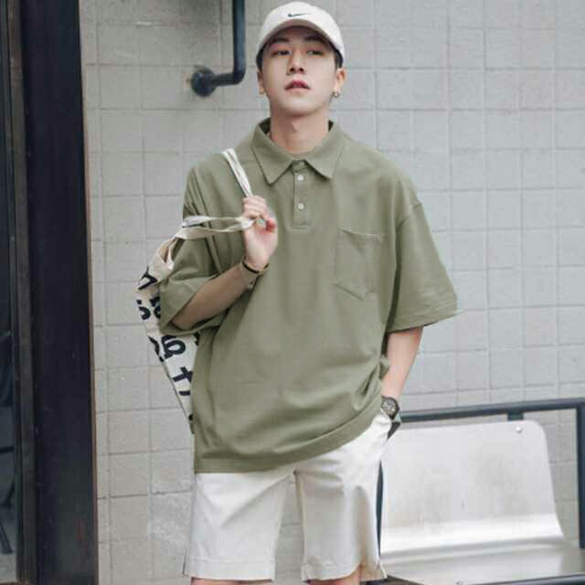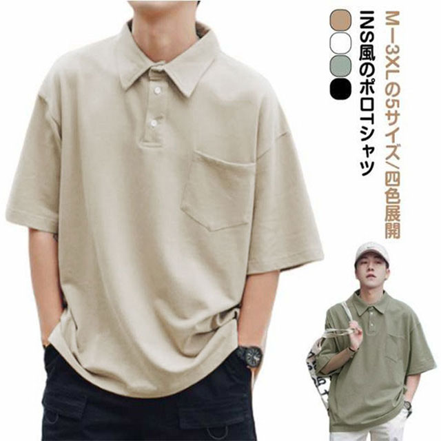 おしゃれ メンズ 五分袖 ポロシャツ メンズファッション 通販 ホワイト ブラック カーキ グリーン M L XL 2XL 3XL