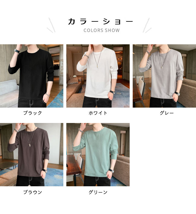 Tシャツ メンズ 長袖 トップス カッ メンズファッション 人気 M L XL 2XL 3XL 4XL ブラック ホワイト グレー ブラウン グリーン