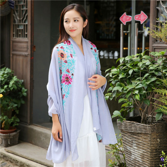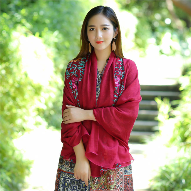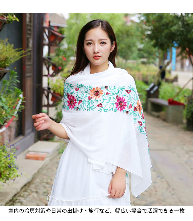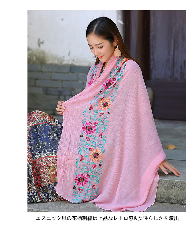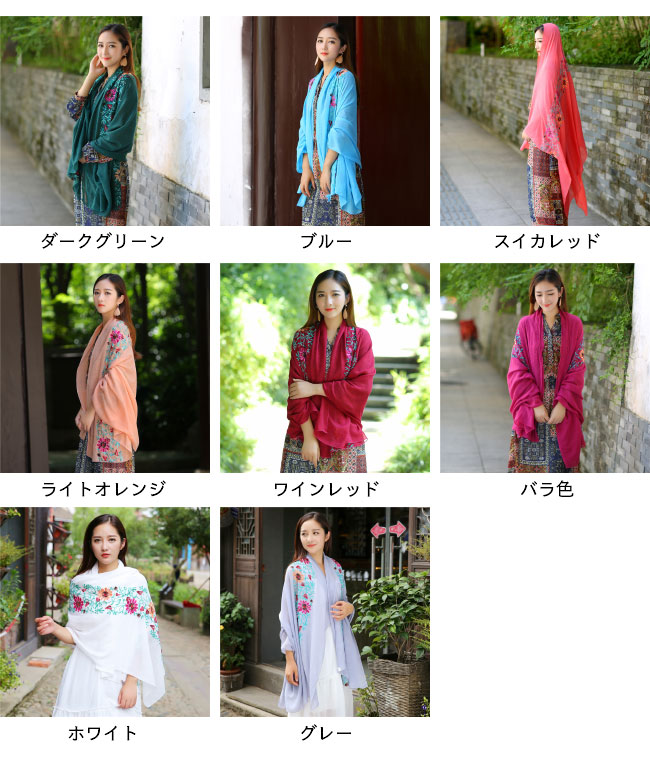 ストール 刺繍 大判 マフラー 秋新作 バッグ 小物 ブランド雑貨 通販 ロイヤルブルー ネイビー レッド ブラック イエロー フルーツグリーン ダークオレンジ ブラウン ダークピンク オフホワイト ライトピンク エメラルドグリーン ダークグリーン ブルー スイカレッド ライトオレンジ ワインレッド バラ色 ホワイト グレー