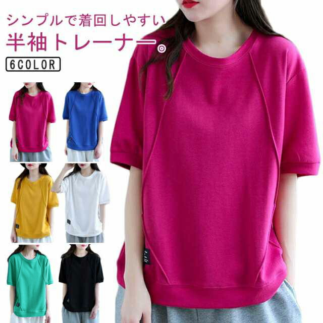 カットソー 半袖Tシャツ ゆったり レ トップス スウェット トレーナー 通販 ブラック グリーン イエロー ホワイト ローズレッド ブルー M L XL 2XL 3XL 4XL