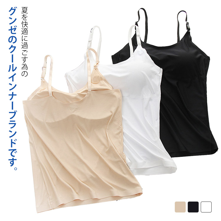 接触冷感 キャミソール タンクトップ インナー 下着 ナイトウエア 続々登場 白 黒 肌色 F XL