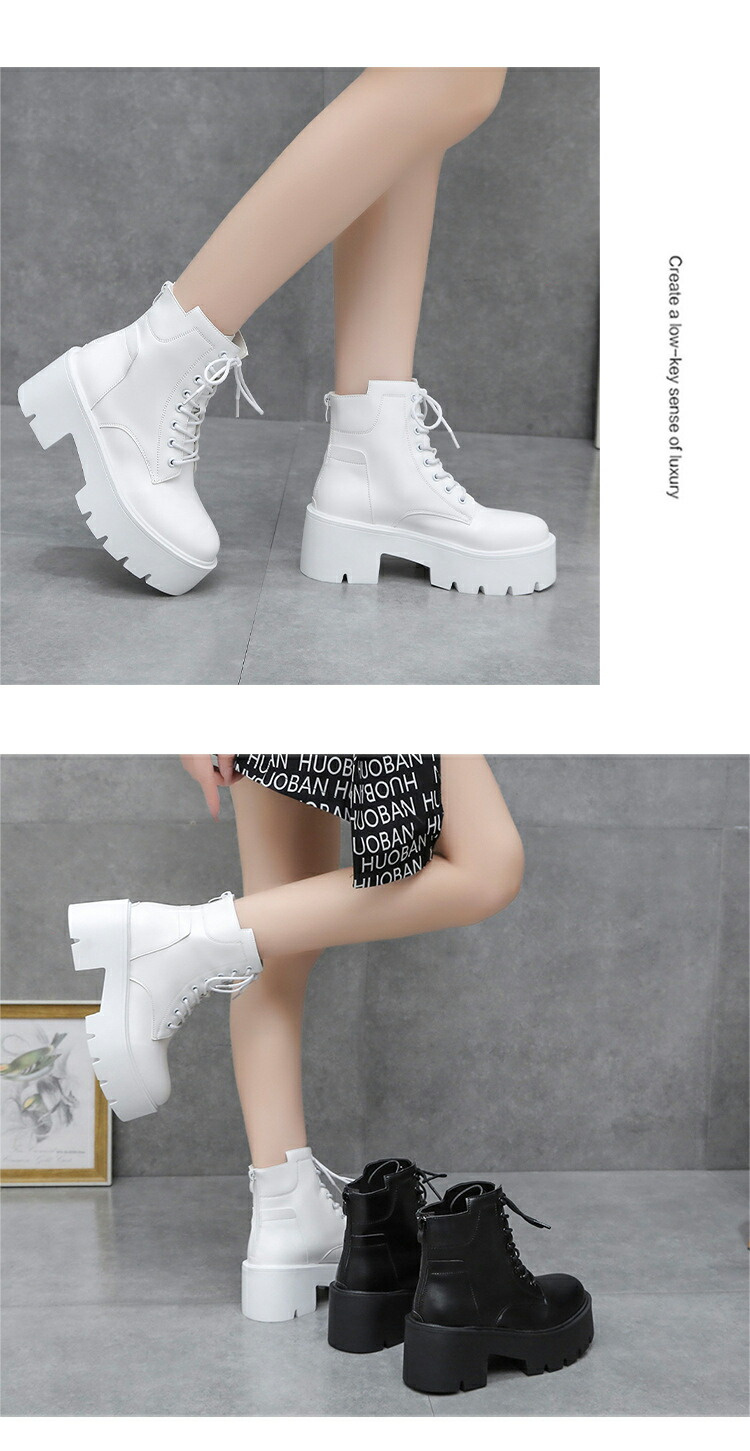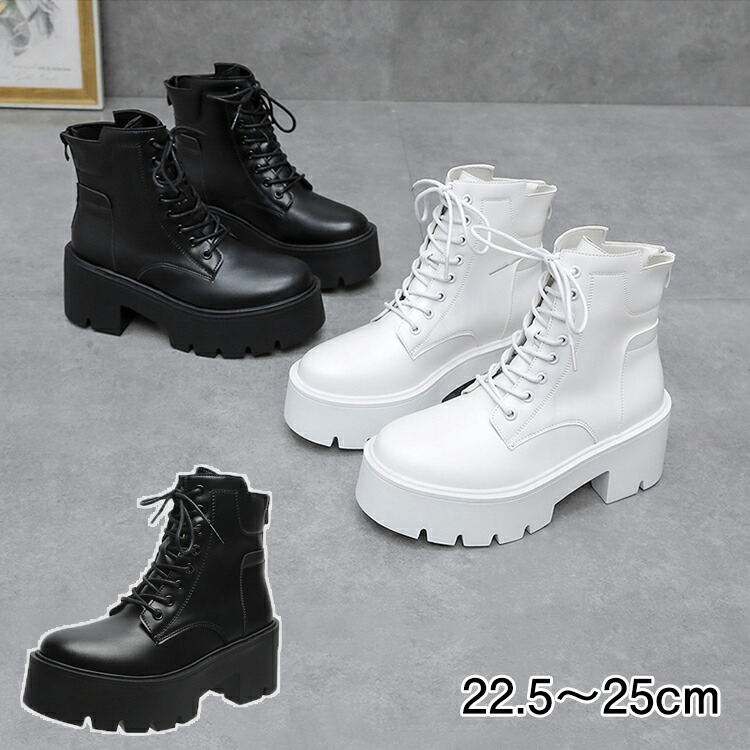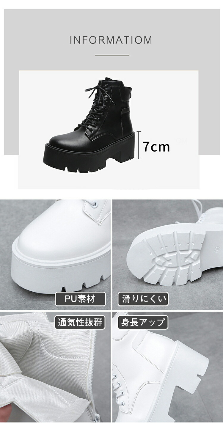 厚底ブーツ 7cmヒール ショートブー 靴 通販 ホワイト ブラック 22.5cm 23.0cm 23.5cm 24.0cm 24.5cm 25.0cm