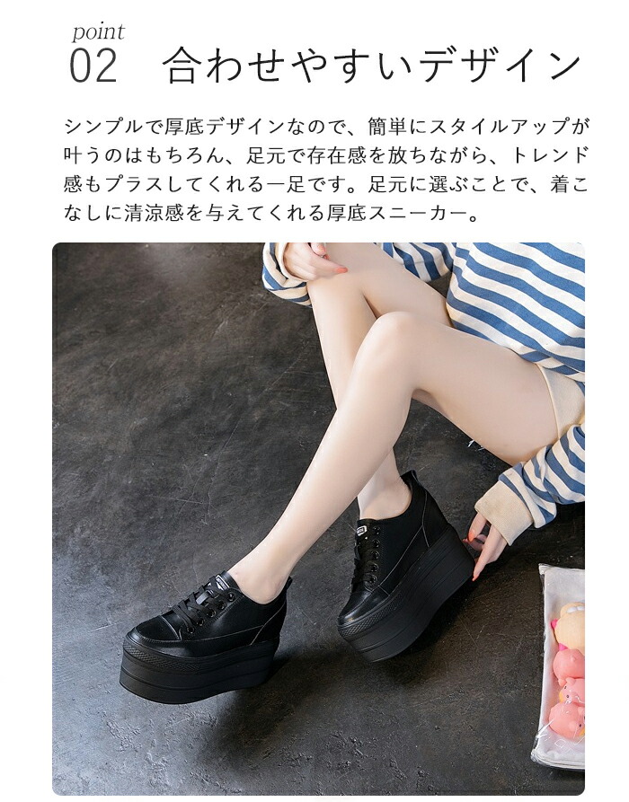 厚底スニーカー レディース 身長アップ 靴 人気 ブラック ホワイト 21.5 22.0 22.5 23.0 23.5 24.0 24.5