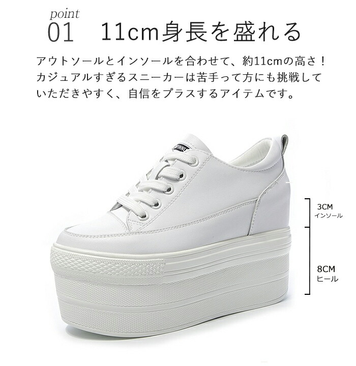厚底スニーカー レディース 身長アップ シューズ シークレットシューズ 靴 シークレットスニーカー インソール スニーカー ヒール 11cm かわいい シンプル 柔軟性 通気性 おしゃれ 美脚 軽量