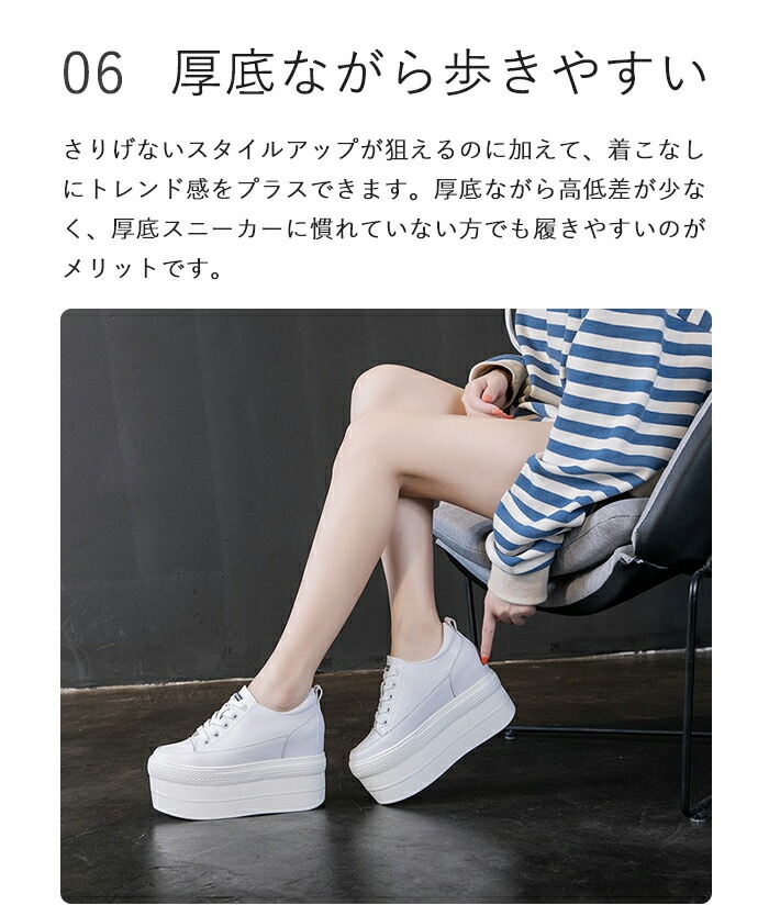 アウトソールとインソールを合わせて、約11cmの高さ!カジュアルすぎるスニーカーは苦手って方にも挑戦していただきやすく、自信をプラスするアイテムです。