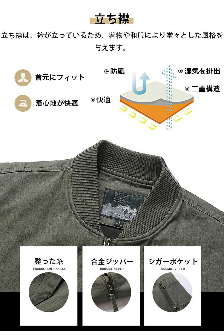 フライトジャケット メンズ ミリタリージャケット 無地 ストリート 黒 スウィングトップ 春 秋 冬 防風 ゆったり 立ち襟 ブルゾン ジャンパー アウター 秋物 作業着 大きいサイズ バイク 防寒