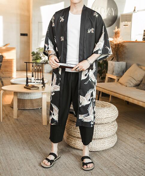 ロング丈羽織 着物風 スリットメンズロ メンズファッション 新作 M L XL XXL 3XL 4XL 5XL