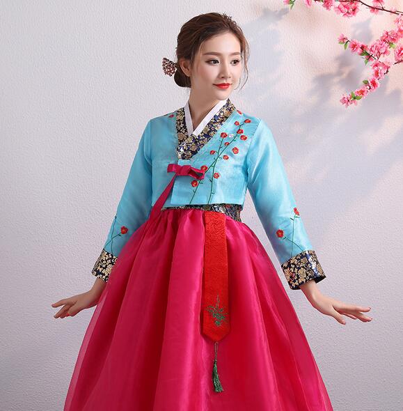 チマチョゴリ刺しゅう豪華大人用チマチョ ワンピース 続々登場 ドレスだけ ドレス+パニエ 青+ローズ 黄色+青 白+緑 ピンク+レッド