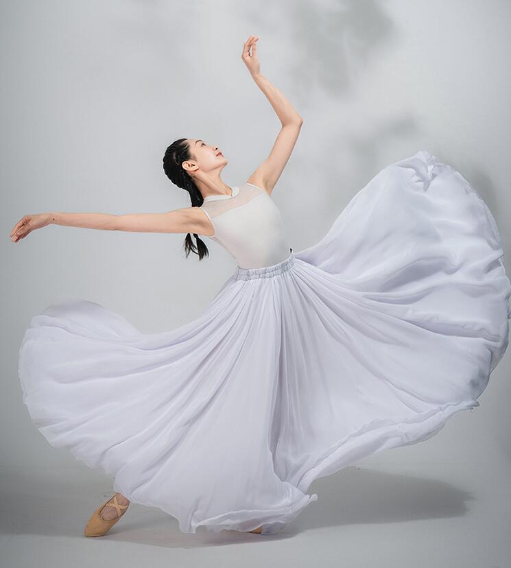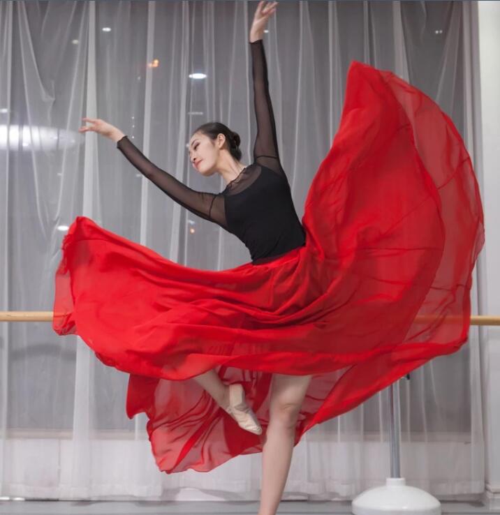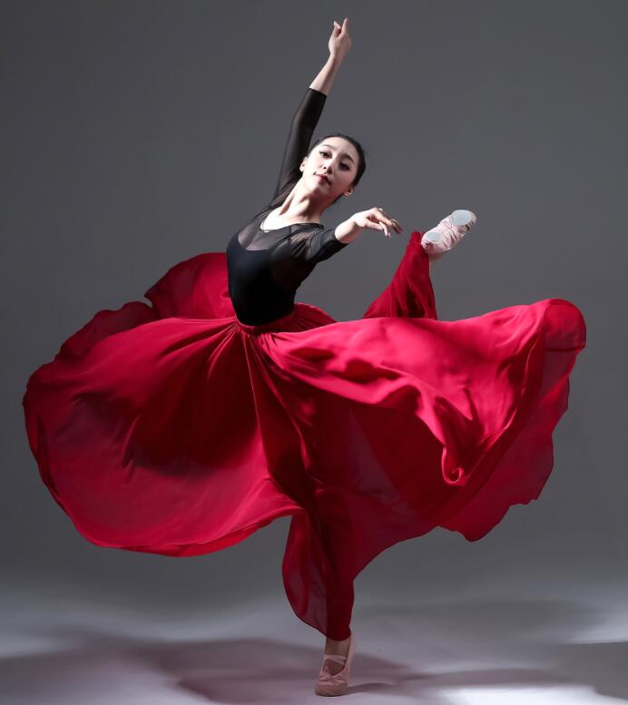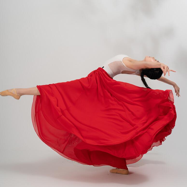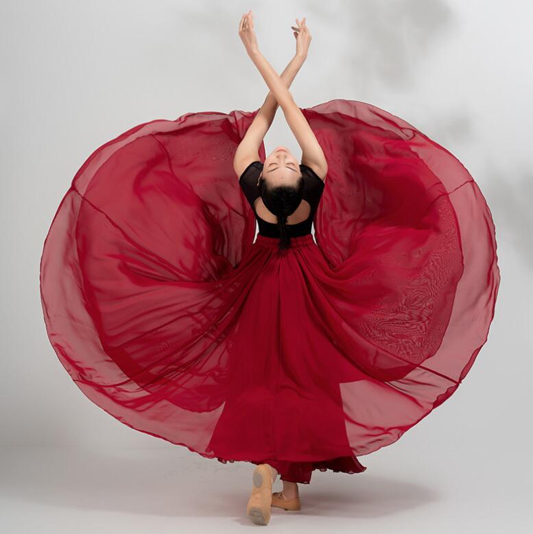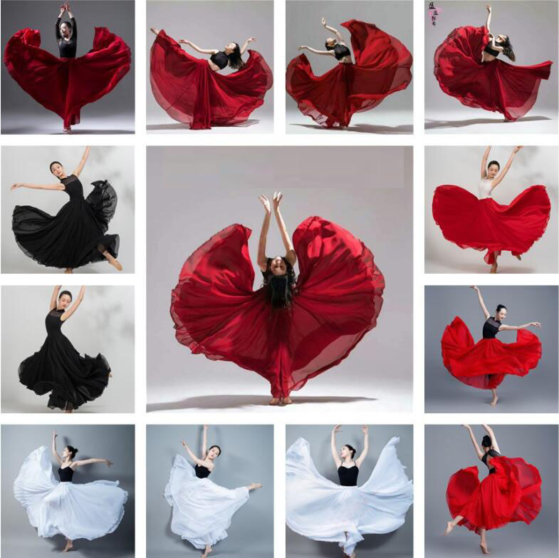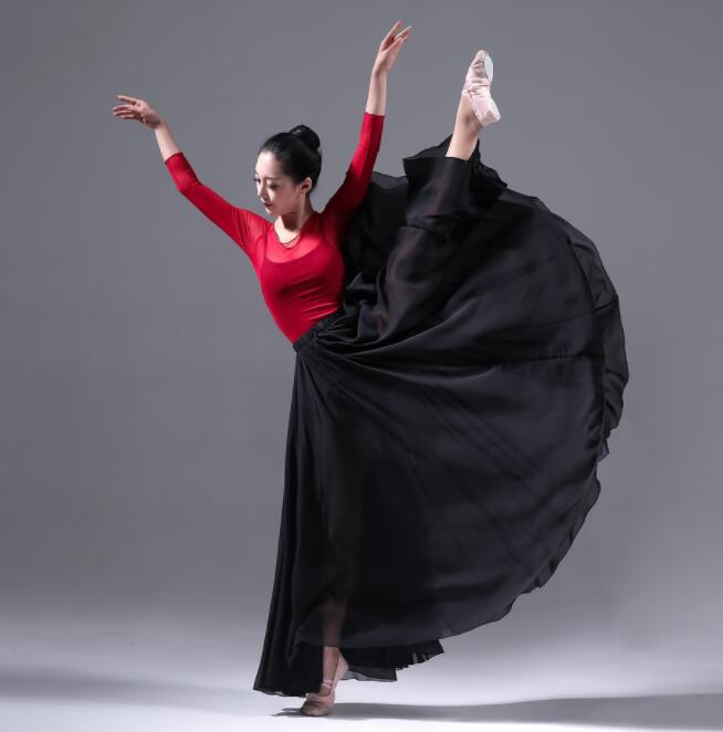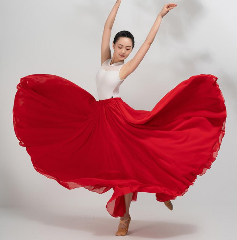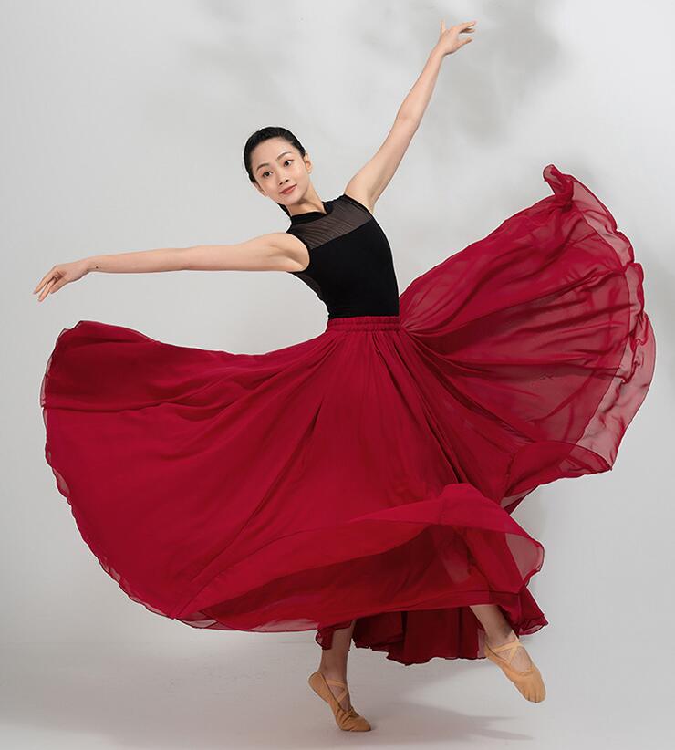 ダンススカート ロング丈 大きい裾 広 黒 白 赤 ワインレッド 85cm 90cm 95cm