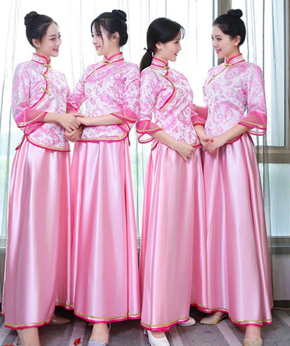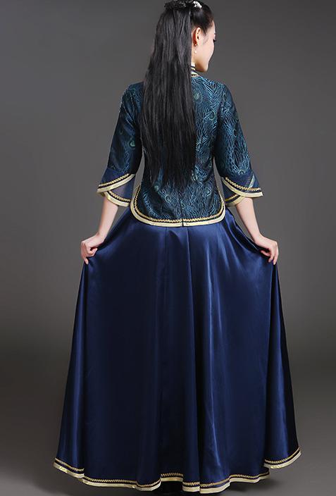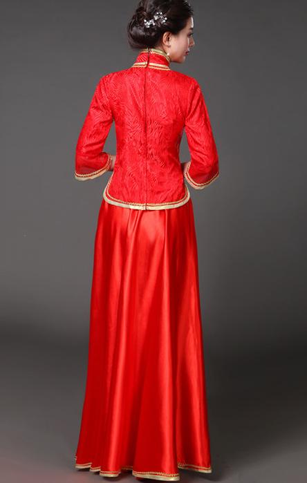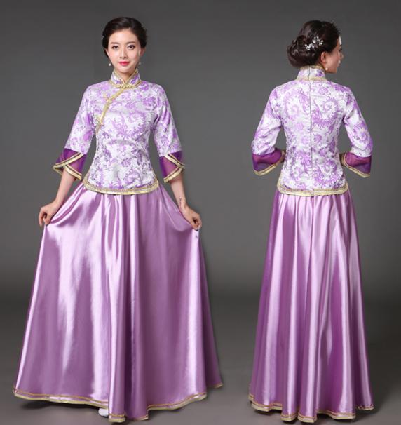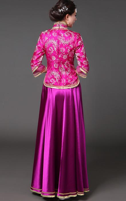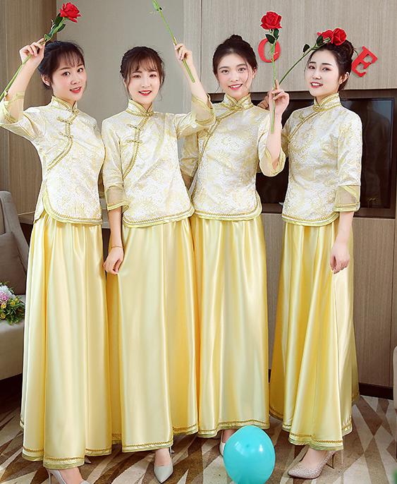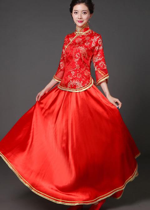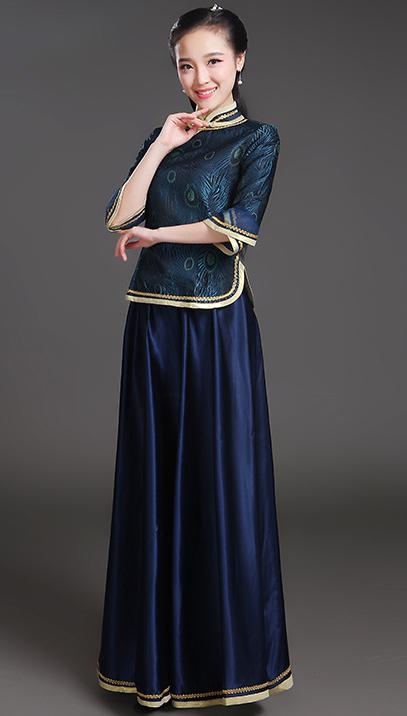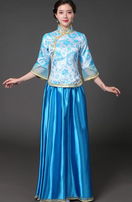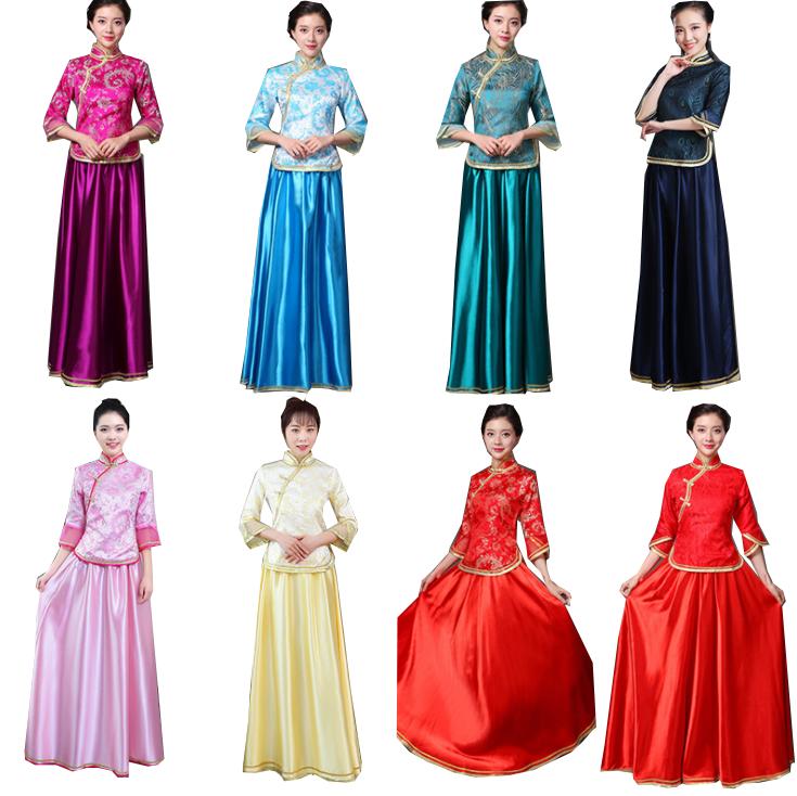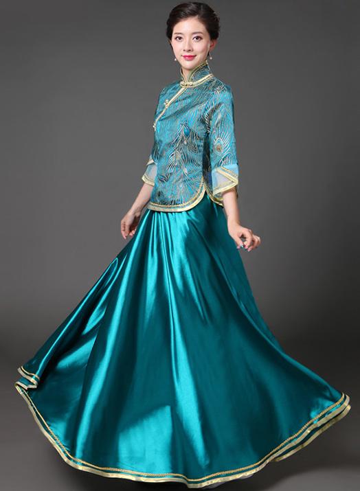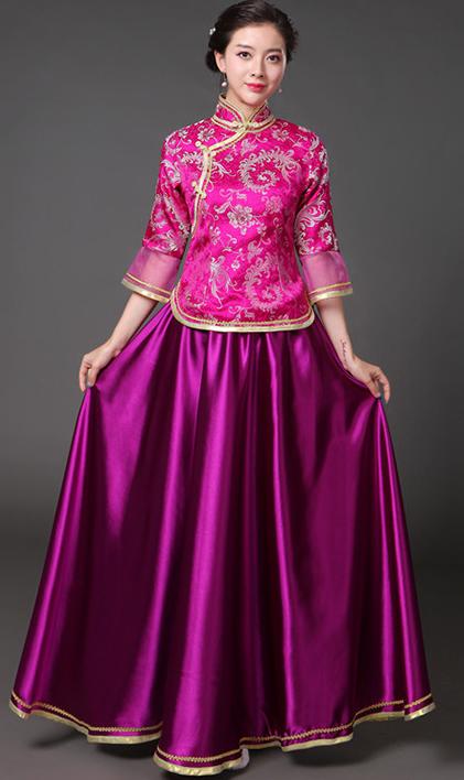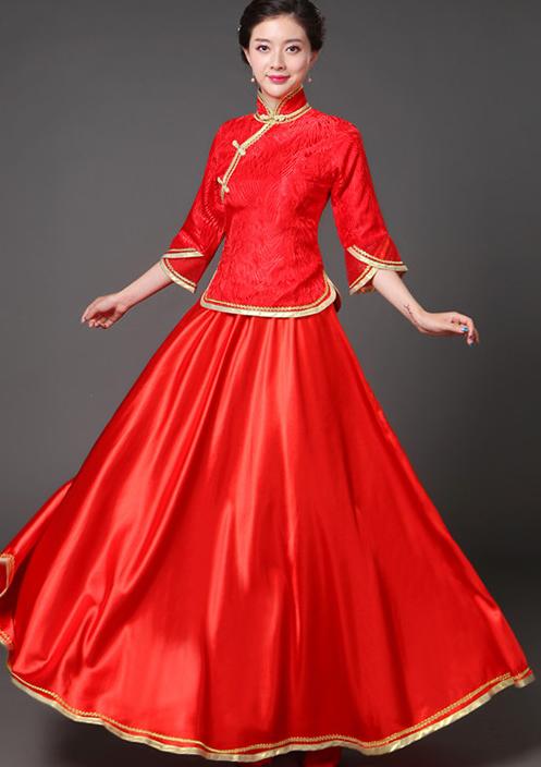 中華服 上下2点セット 七分袖 ブラウ レディースファッション 続々登場 S M L XL 2XL 3XL ローズ ライトブルー ダークグリーン ネイビー ピンク イエロー レッド(金プリント) レッド(赤プリント) ライト紫