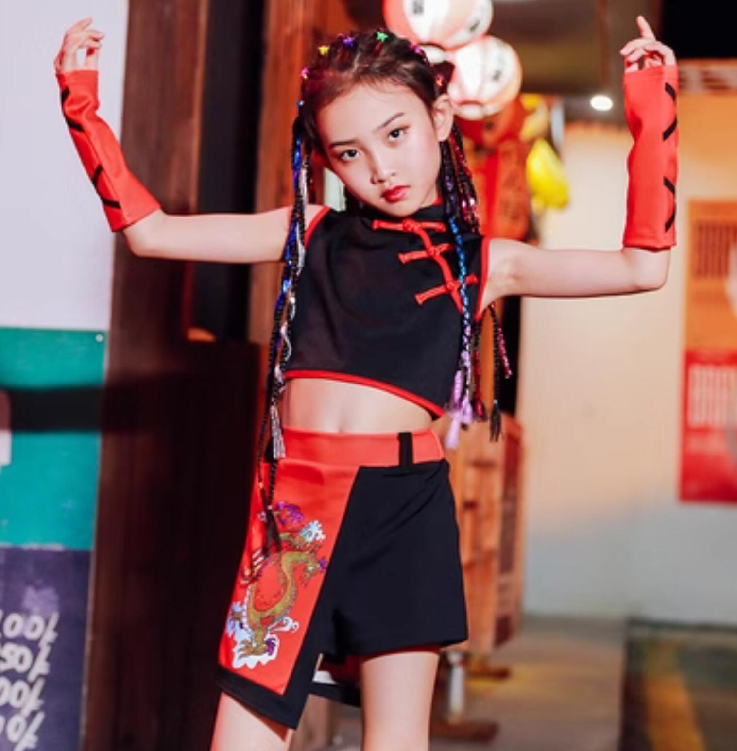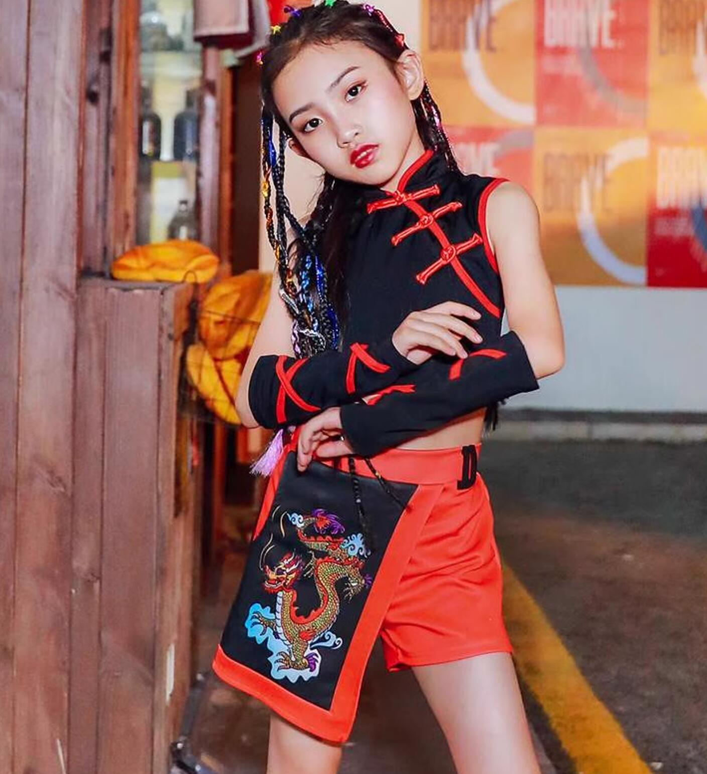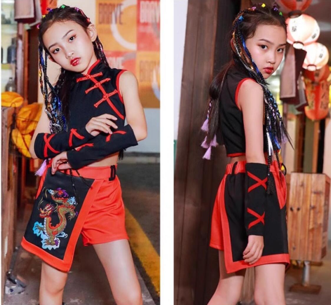 キッズ 中華風ダンス衣装 3点セットア キッズ ドレス 早い者勝ち 110cm 120cm 130cm 140cm 150cm 160cm 170cm 赤パンツセット 黒パンツセット