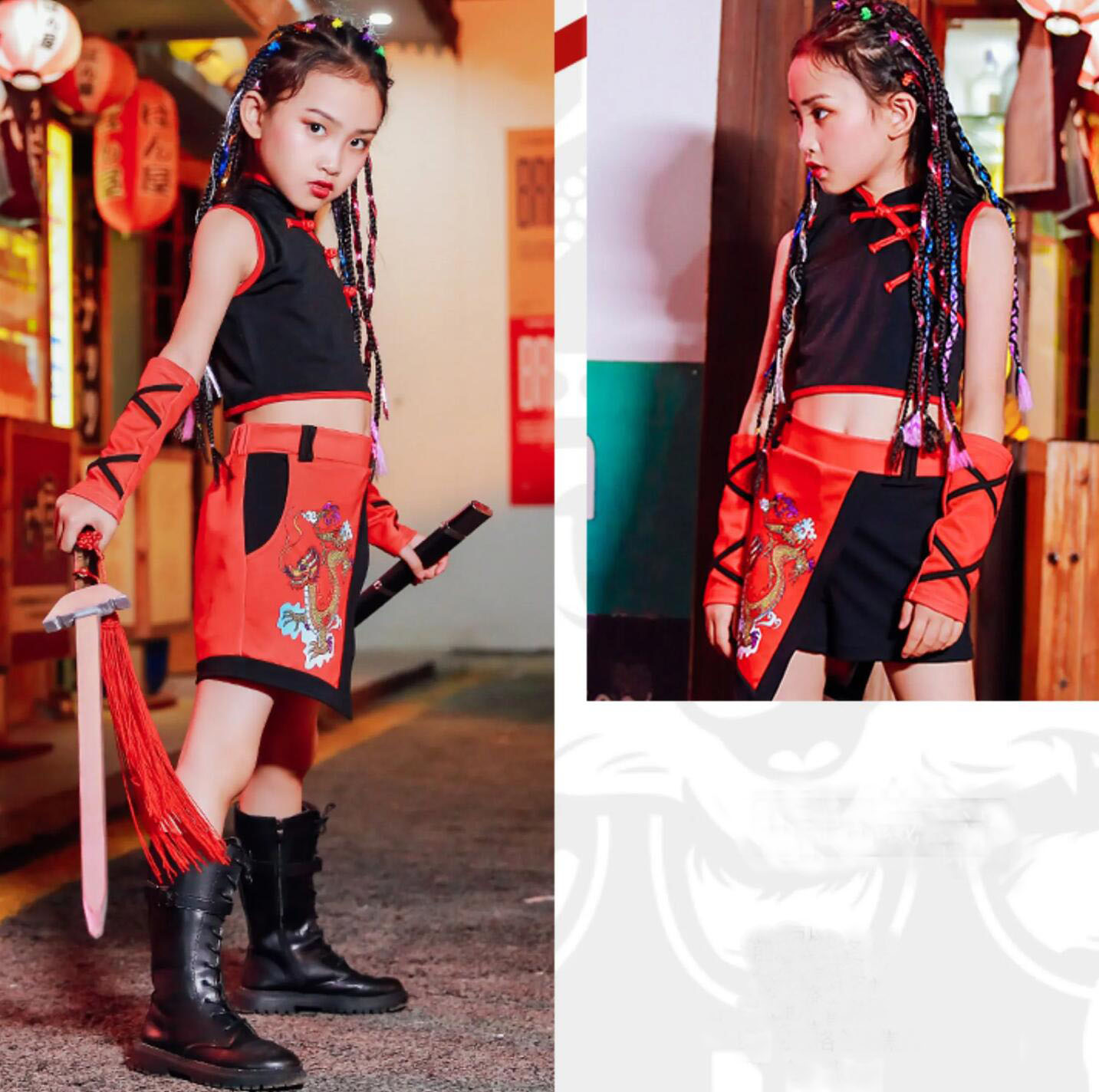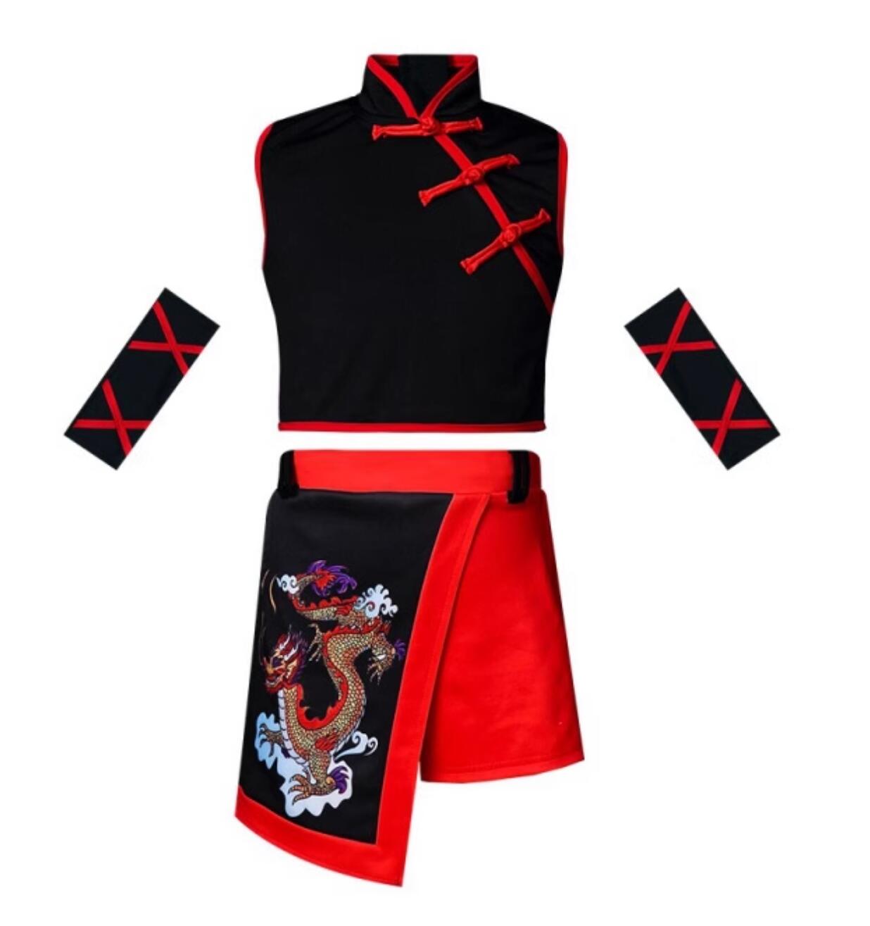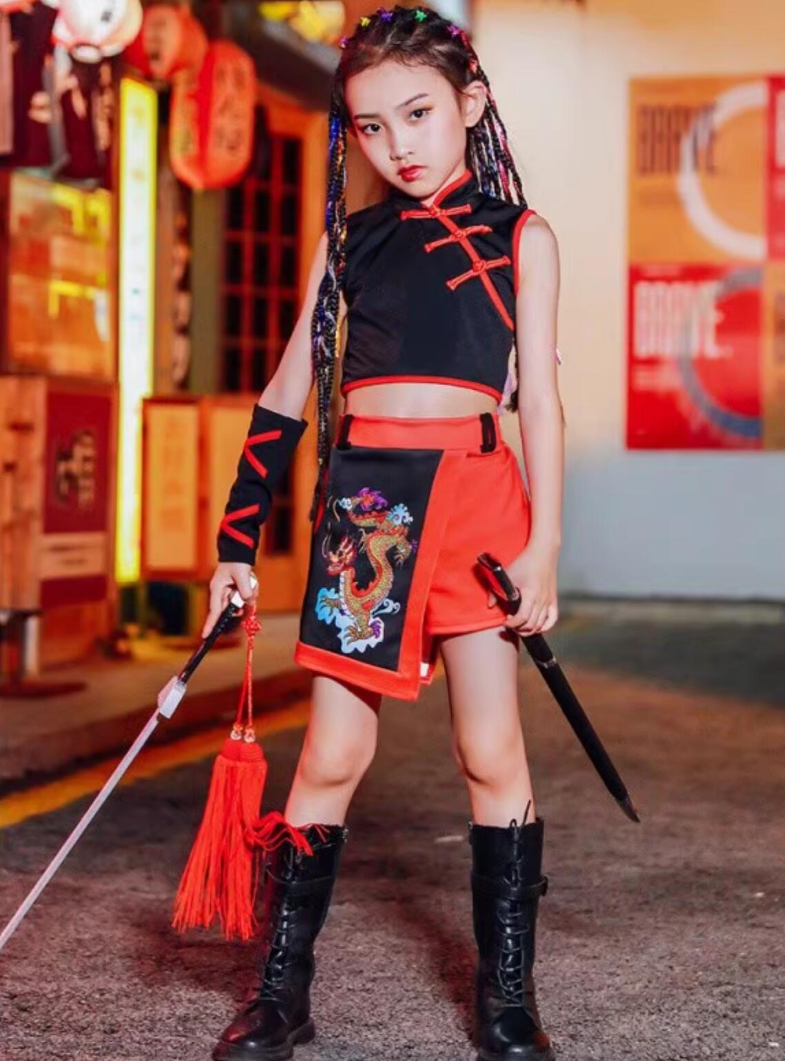 キッズ 中華風ダンス衣装 3点セットア キッズ ドレス 早い者勝ち 110cm 120cm 130cm 140cm 150cm 160cm 170cm 赤パンツセット 黒パンツセット