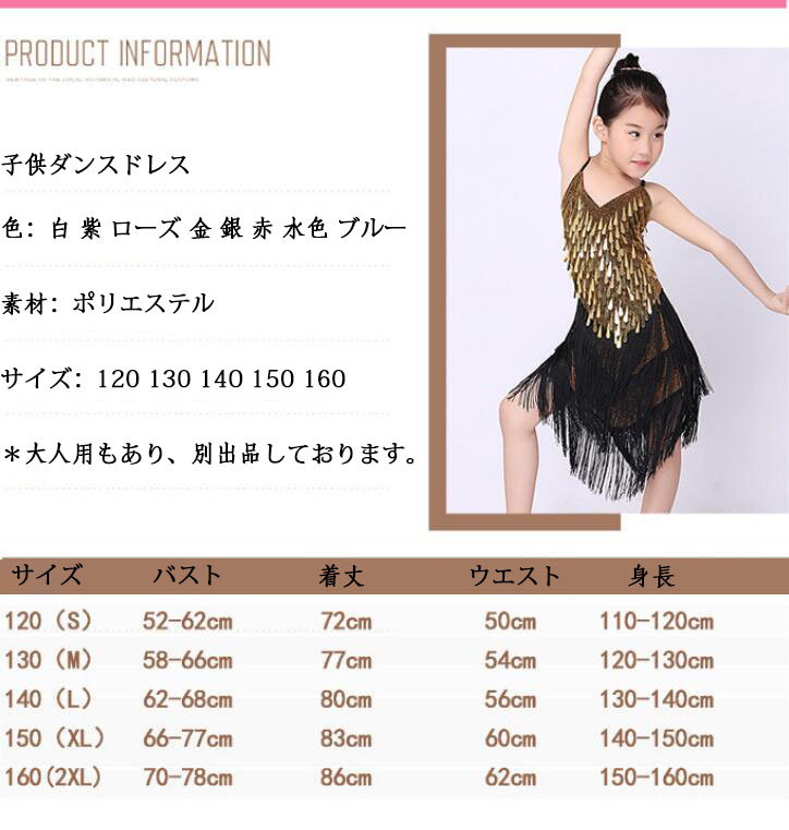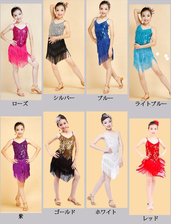 子供ラテンドレス キッズ 女の子 スパ 体操 ダンス 社交ダンス ウェア 特集 120(S) 130(M) 140(L) 150(XL) 160(2XL) 白 紫 ローズ 金 銀 赤 ライトブルー ダークブルー