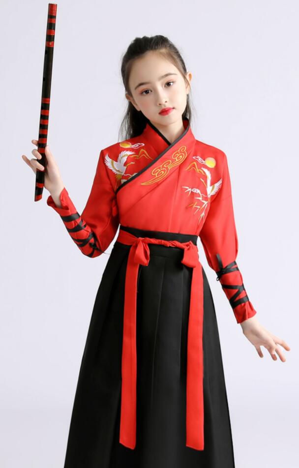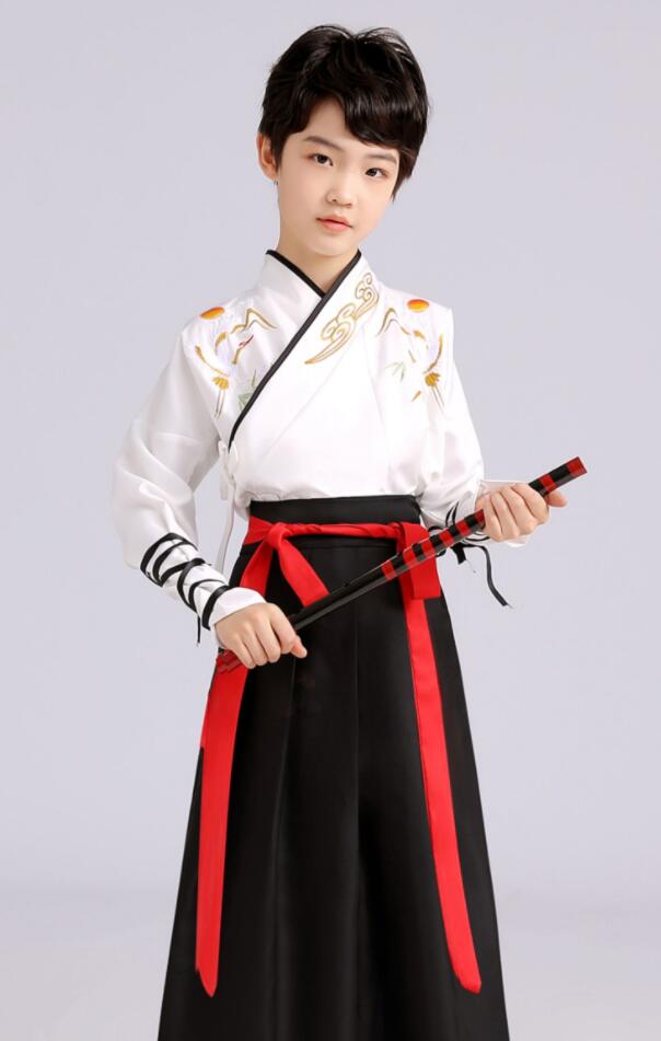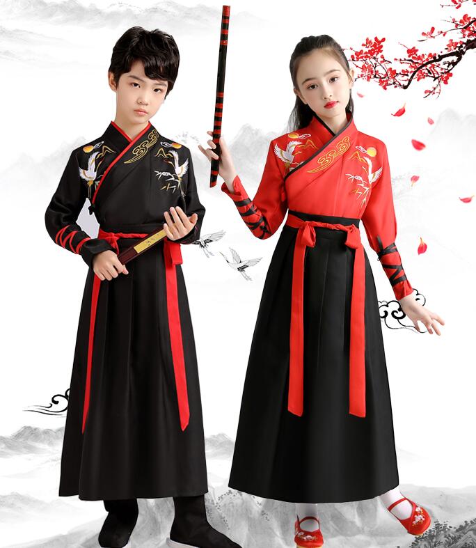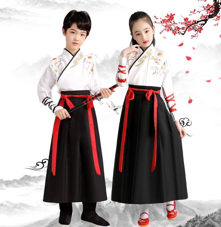 子供 漢服 唐装 中華コスプレ衣装 キ コスプレ 変装 仮装 コスチューム一式 超目玉商品 黒+黒 白+黒 赤+黒 110 120 130 140 150 160 170 180