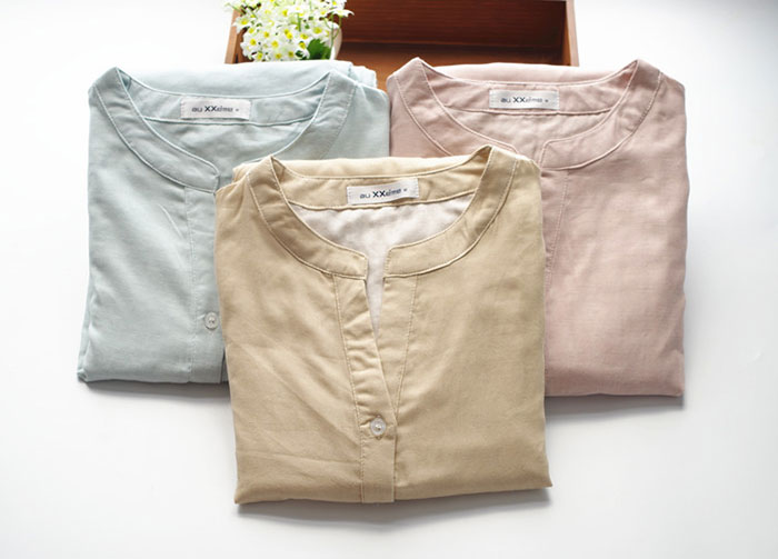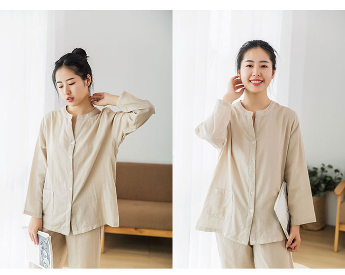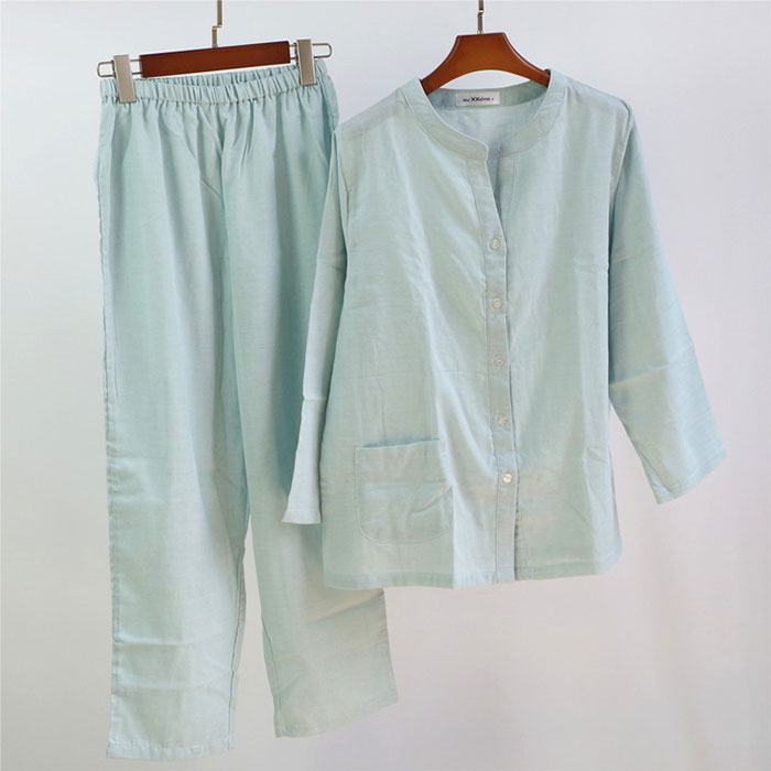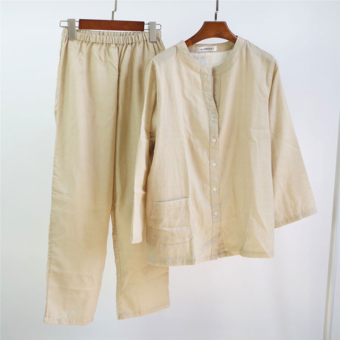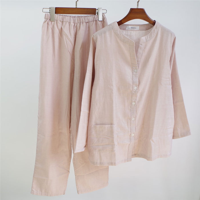 パジャマ 2重ガーゼ 綿100% 前開 インナー 下着 ナイトウエア 新登場! スモークピンク ベージュ ライトブルー S M L XL