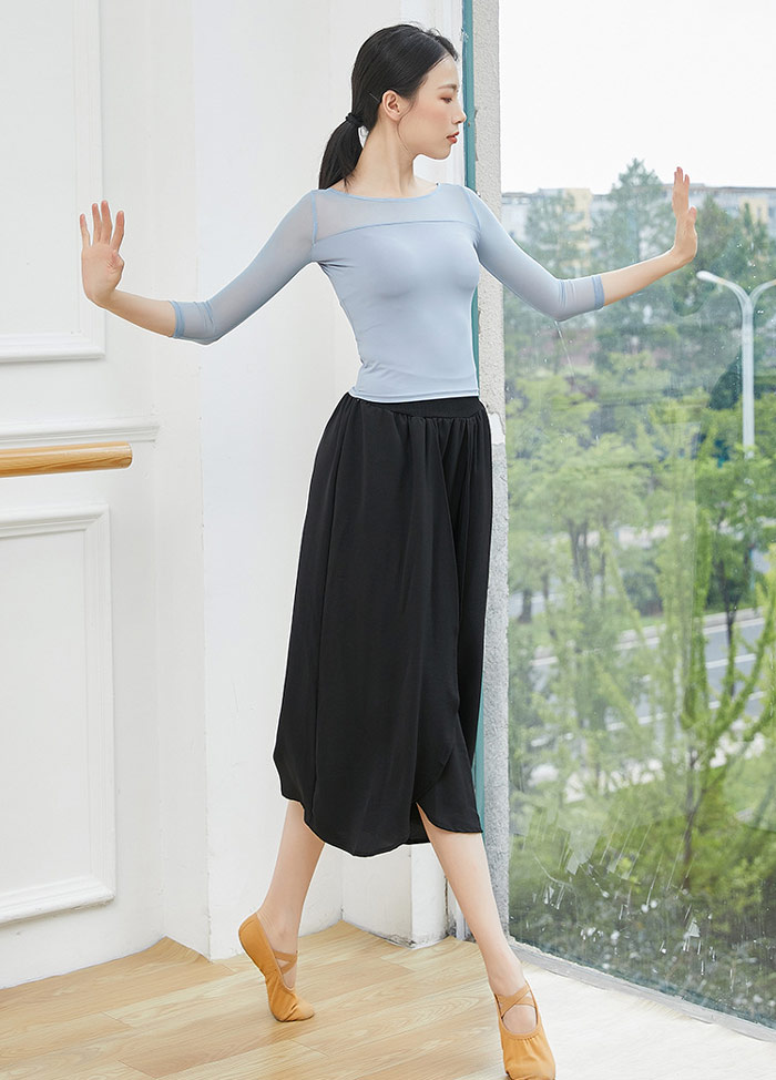バレエ トップス 大人 7分袖 ストレ S M L XL 2XL ブラック ホワイト スモークピンク 灰藍色 灰緑色 パープル(灰系)
