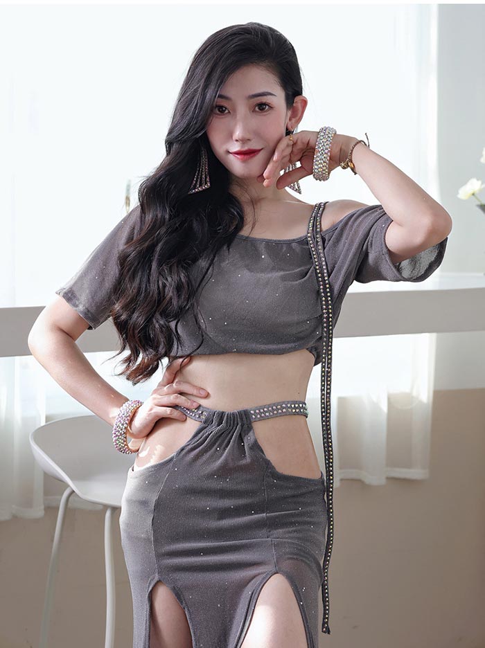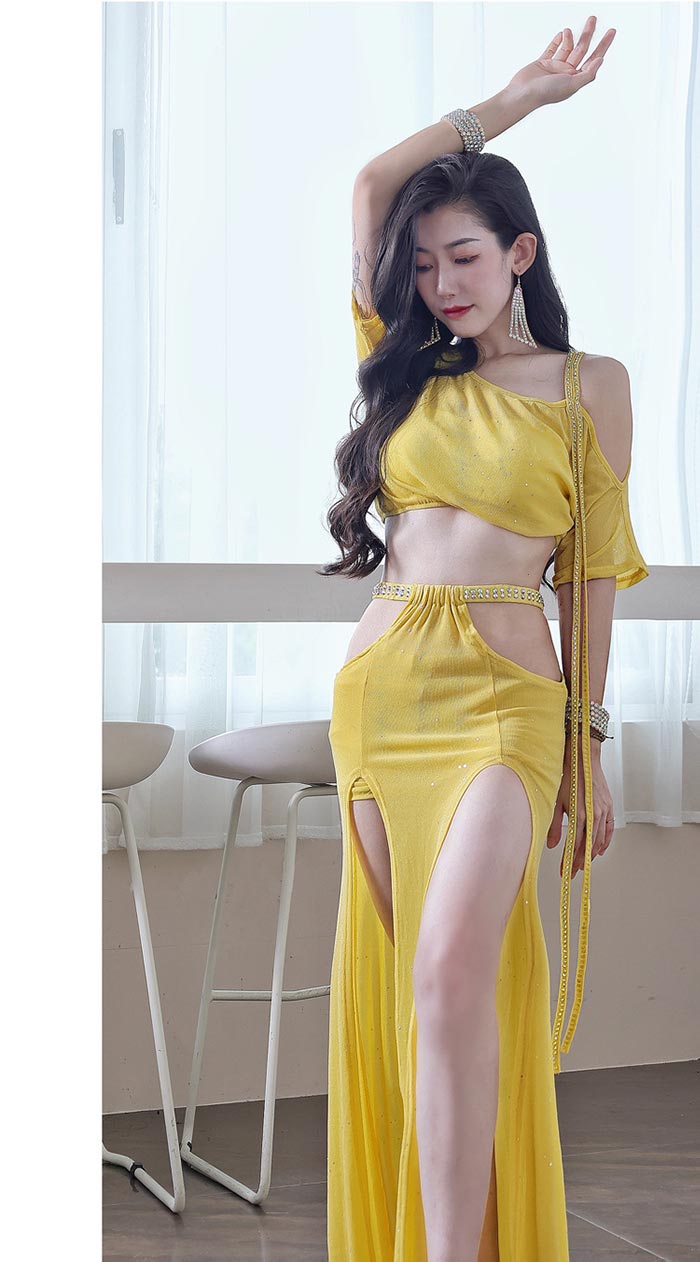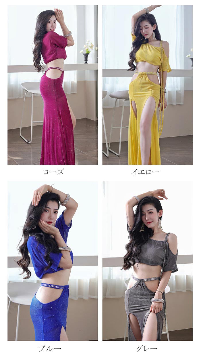 ベリーダンス 衣装 セット レッスン着 体操 ダンス ベリーダンス 衣装セット 通販 S M L グレー イエロー ブルー ローズ