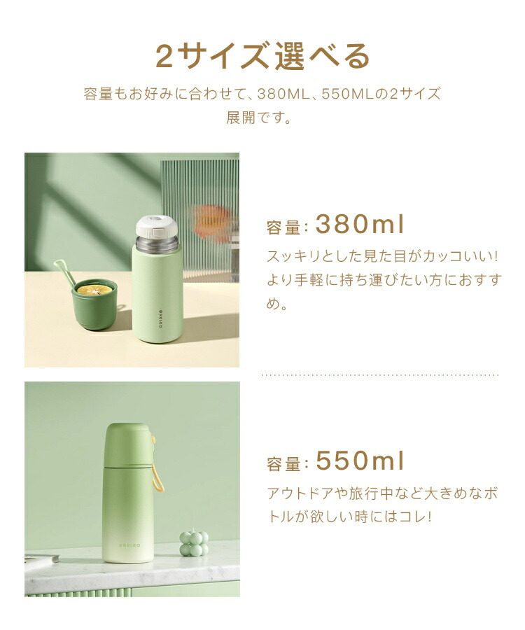 水筒 おしゃれ コップ付き ステンレス キッチン用品 食器 調理器具 人気 グリーン パープル ホワイト パープル(グラデーション) ブルー(グラデーション) ピンク(グラデーション) 380ml 550ml
