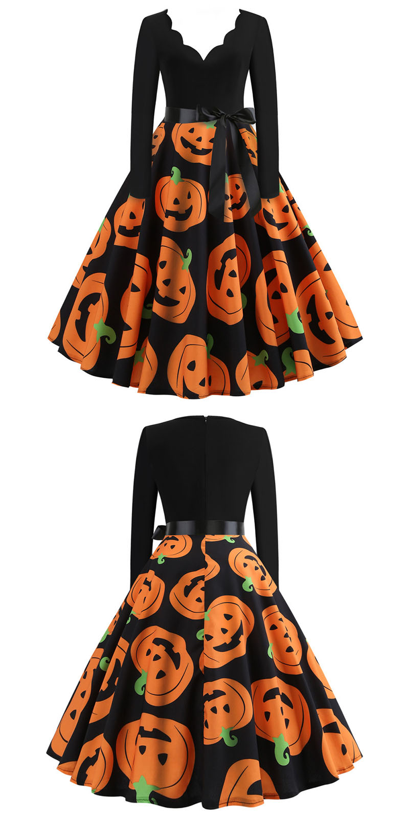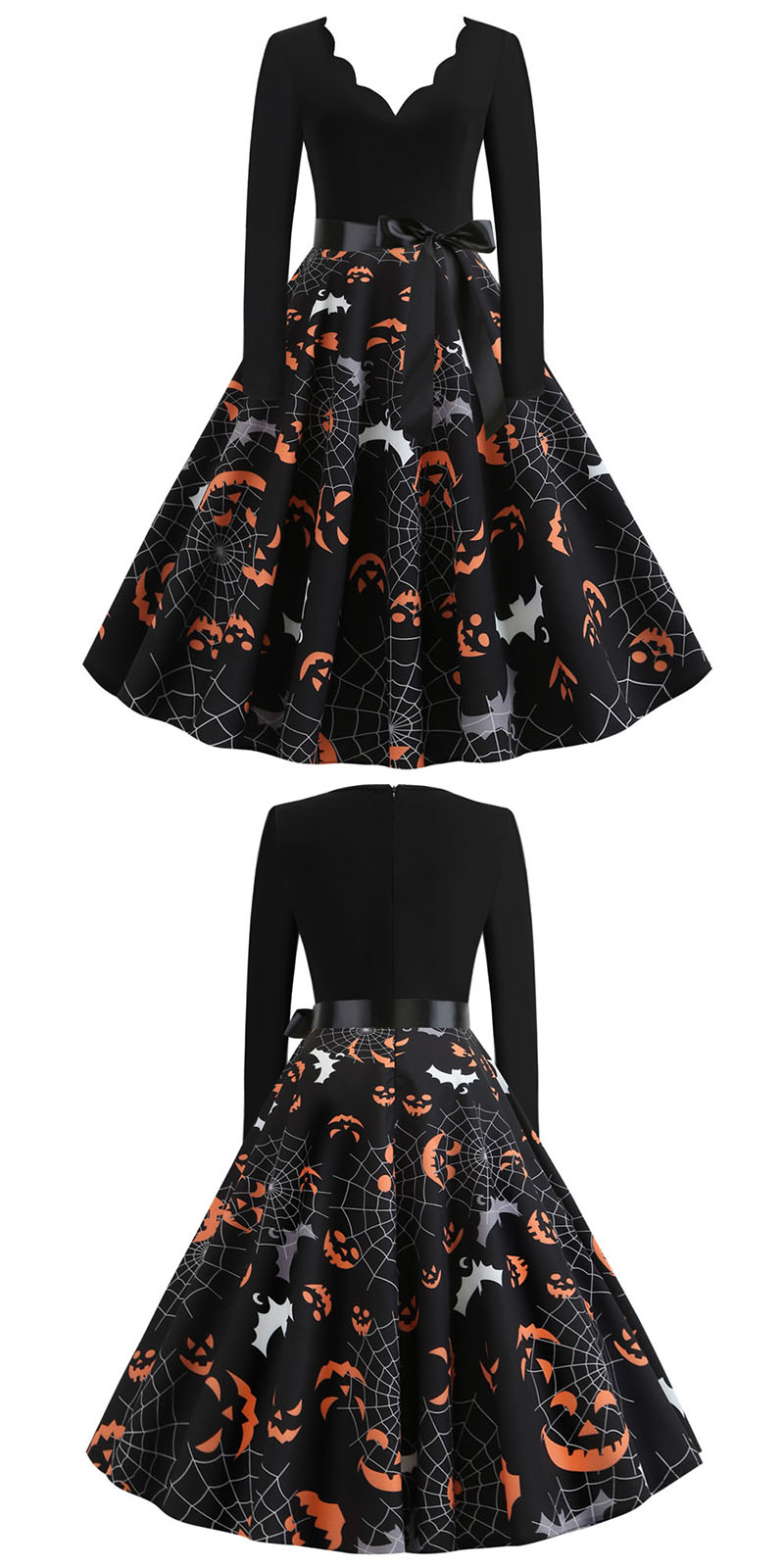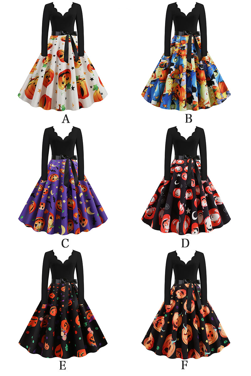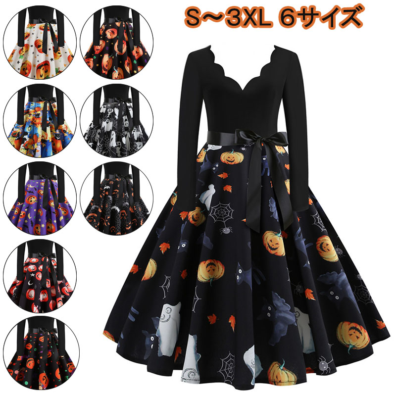 ハロウィン 衣装 レディース ドレス 長袖 ハロウイン仮装 コスチューム コスプレ 大人 かわいい かぼちゃ コウモリ 幽霊 鮮やか 大きいサイズ cosplay HALLOWEEN パーティ 大人用