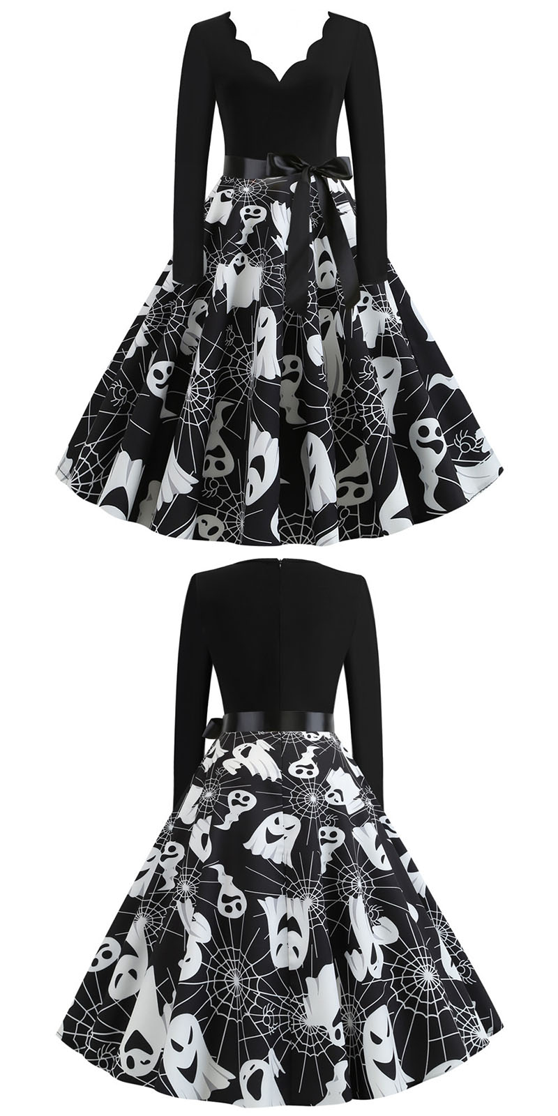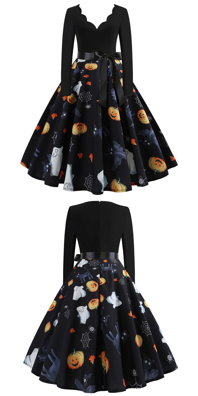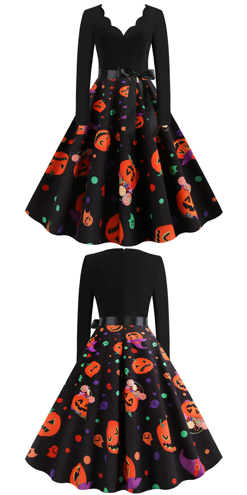 ハロウィン 衣装 レディース ドレス 長袖 ハロウイン仮装 コスチューム コスプレ 大人 かわいい かぼちゃ コウモリ 幽霊 鮮やか 大きいサイズ cosplay HALLOWEEN パーティ 大人用