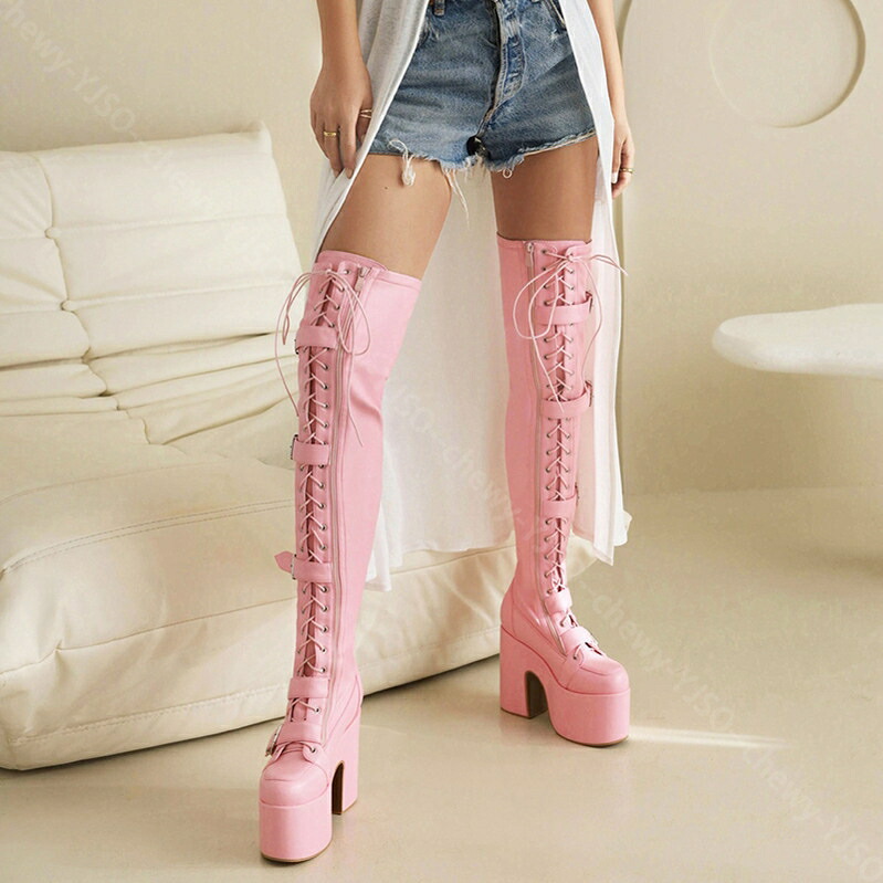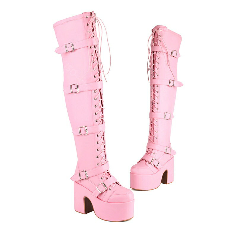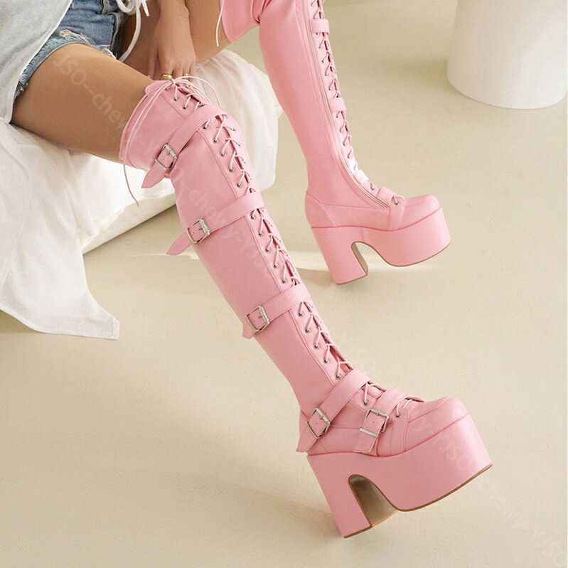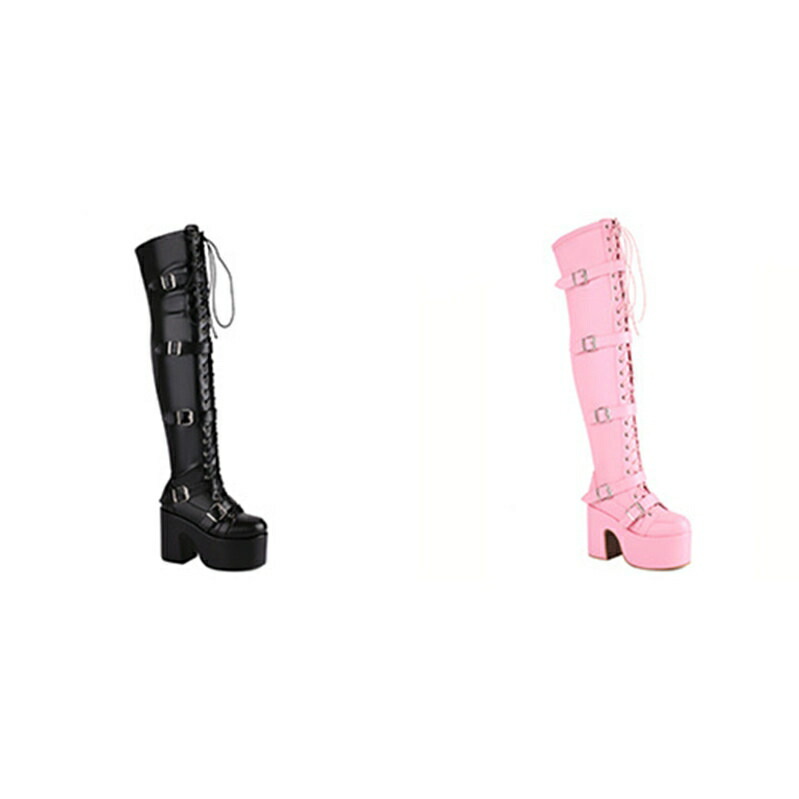 ゴスロリ 風 編み上げ 厚底 ニーハイ レディース靴 ブーツ ジョッキー 早い者勝ち ピンク ブラック 22.0 cm 22.5 cm 23.0 cm 23.5 cm 24.0 cm 24.5 cm 25.0 cm 25.5 cm 26.0 cm 26.5 cm 27.0 cm 27.5 cm 28.0 cm