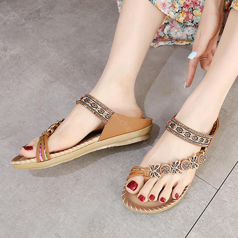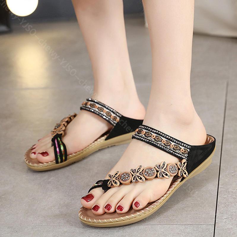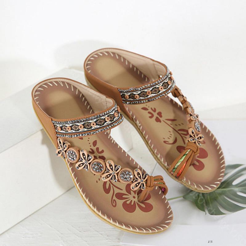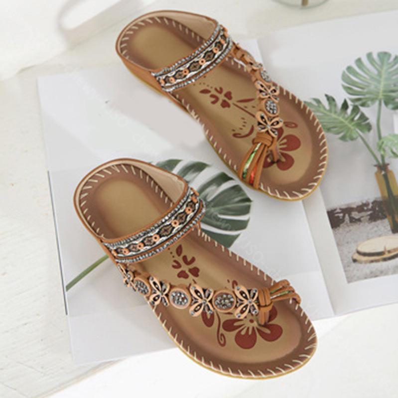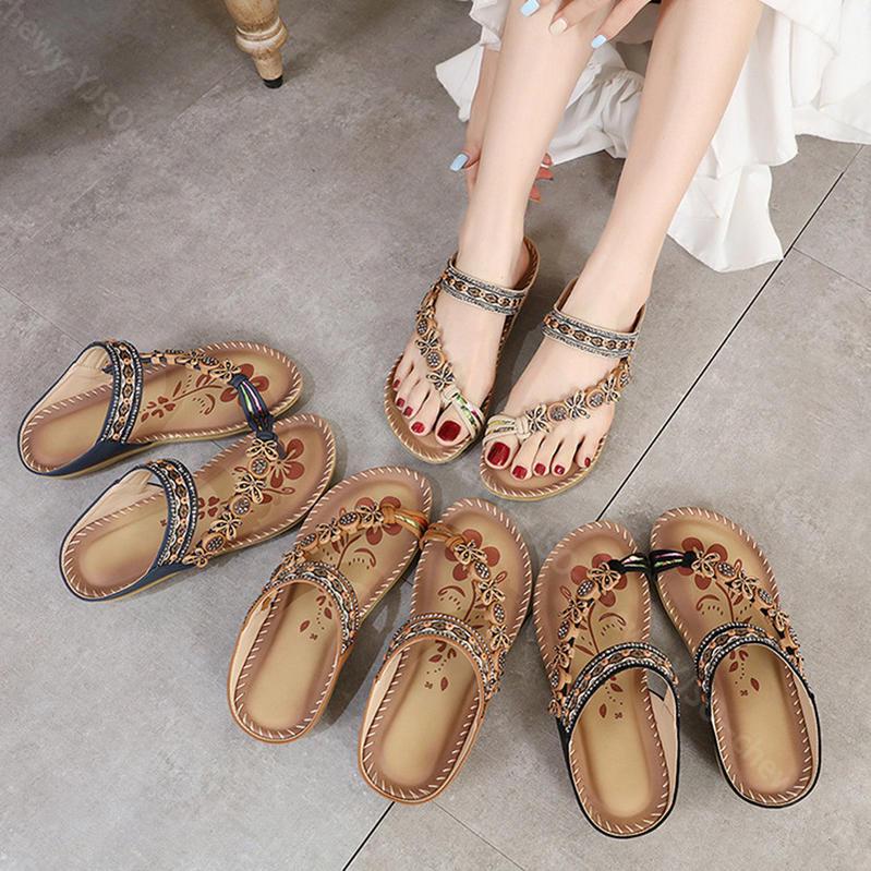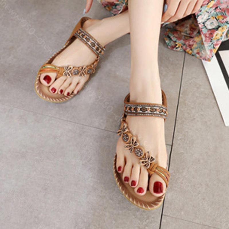 ♪美脚も快適もこれ一足で実現できるボヘミア風サンダル、ぺたんこタイプで安定感があって歩きやすく、普段使いでも旅行でも不可欠な1足。